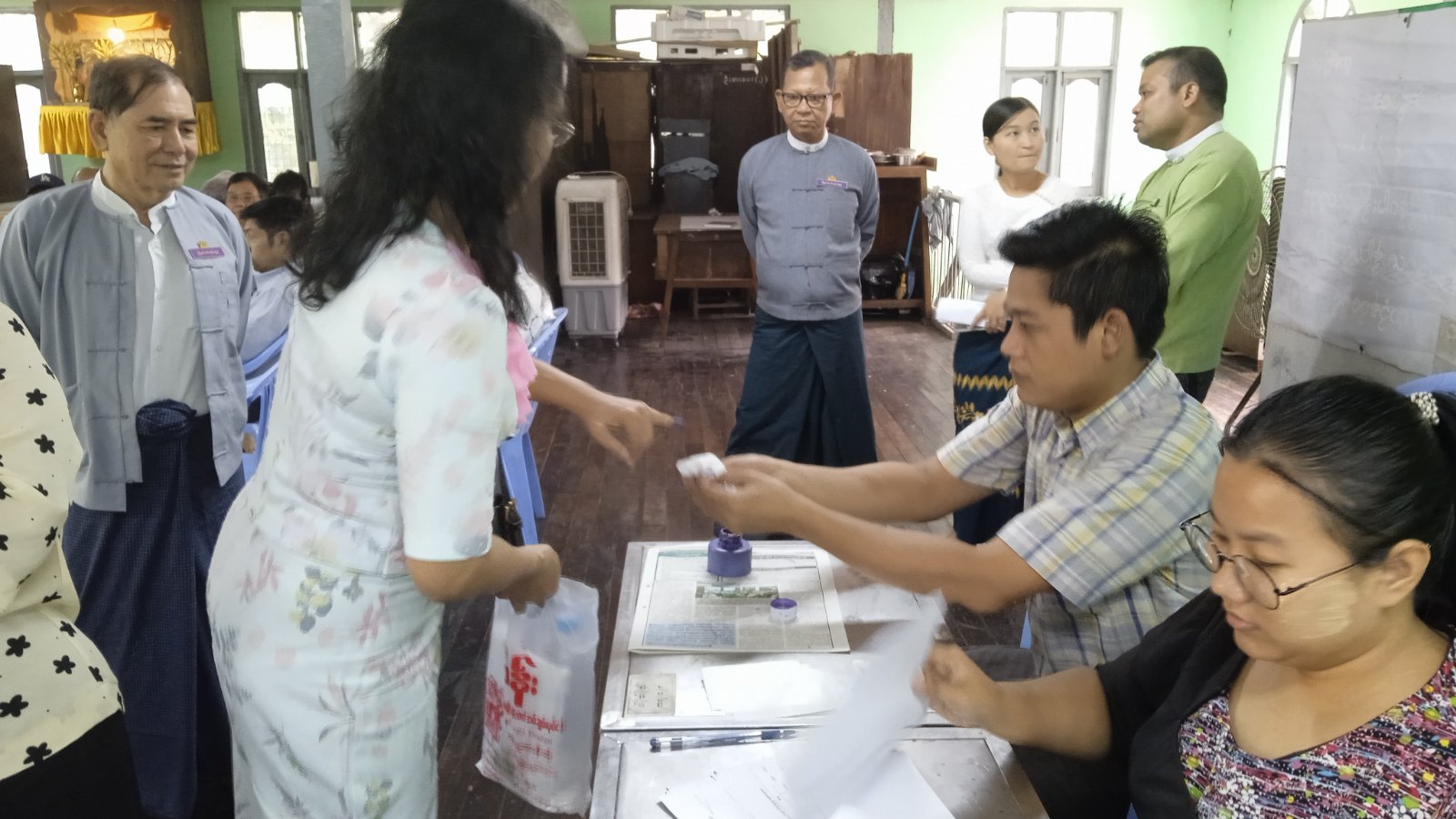 ရန်ကုန်တိုင်းဒေသကြီး၊ ရန်ကင်းမြို့နယ်တွင် ကြိုတင်ဆန္ဒမဲလက်မှတ်ဖြင့် ဆန္ဒမဲပေးနိုင်ရေးအတွက် ပုံစံ (၁၅) ဖြင့် တောင်းဆိုသောမြို့များရှိမဲစာရင်းပါရှိသည့် သက်ဆိုင်ရာမြို့နယ်ပြင်ပရောက် ဆန္ဒမဲပေးပိုင်ခွင့်ရှိသူများ (*ယာယီနေရပ်စွန့်ခွာနေရသူများ*) အား မိမိတို့၏မဲပေးခွင့်မဆုံးရှုံးစေရေးအတွက် ယနေ့နံနက်ပိုင်းက မြို့နယ်အထွေထွေအုပ်ချုပ်ရေးဦးစီးဌာနရုံးတွင် ကြိုတင်ဆန္ဒမဲပေးလျက်ရှိကြောင်း သိရသည်။