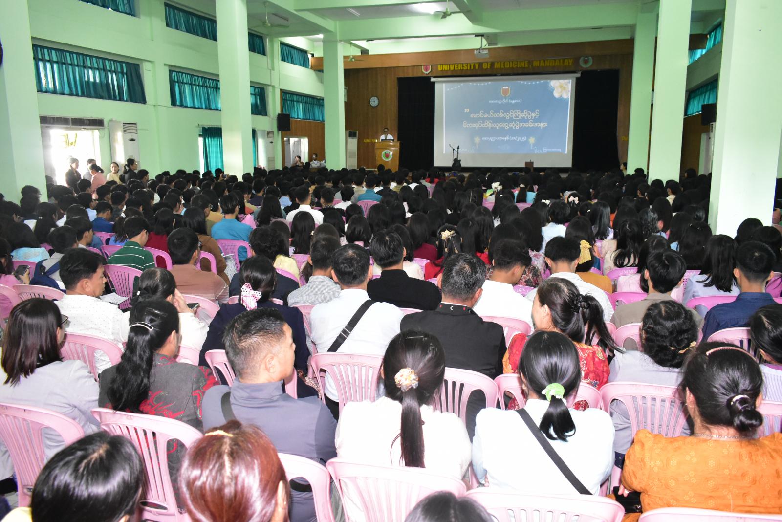 ဆေးပညာပထမနှစ် (၁၁/၂၀၂၅)၊ မောင်မယ်သစ်လွင်ကြိုဆိုပွဲနှင့် မိဘအုပ်ထိန်းသူတွေ့ဆုံပွဲအခမ်းအနားကို မန္တလေးတိုင်းဒေသကြီး၊ မဟာအောင်မြေခရိုင်၊ ချမ်းအေးသာစံမြို့နယ် ဆေးတက္ကသိုလ် (မန္တလေး) ၌ ယနေ့နံနက်ပိုင်းက ကျင်းပခဲ့သည်။