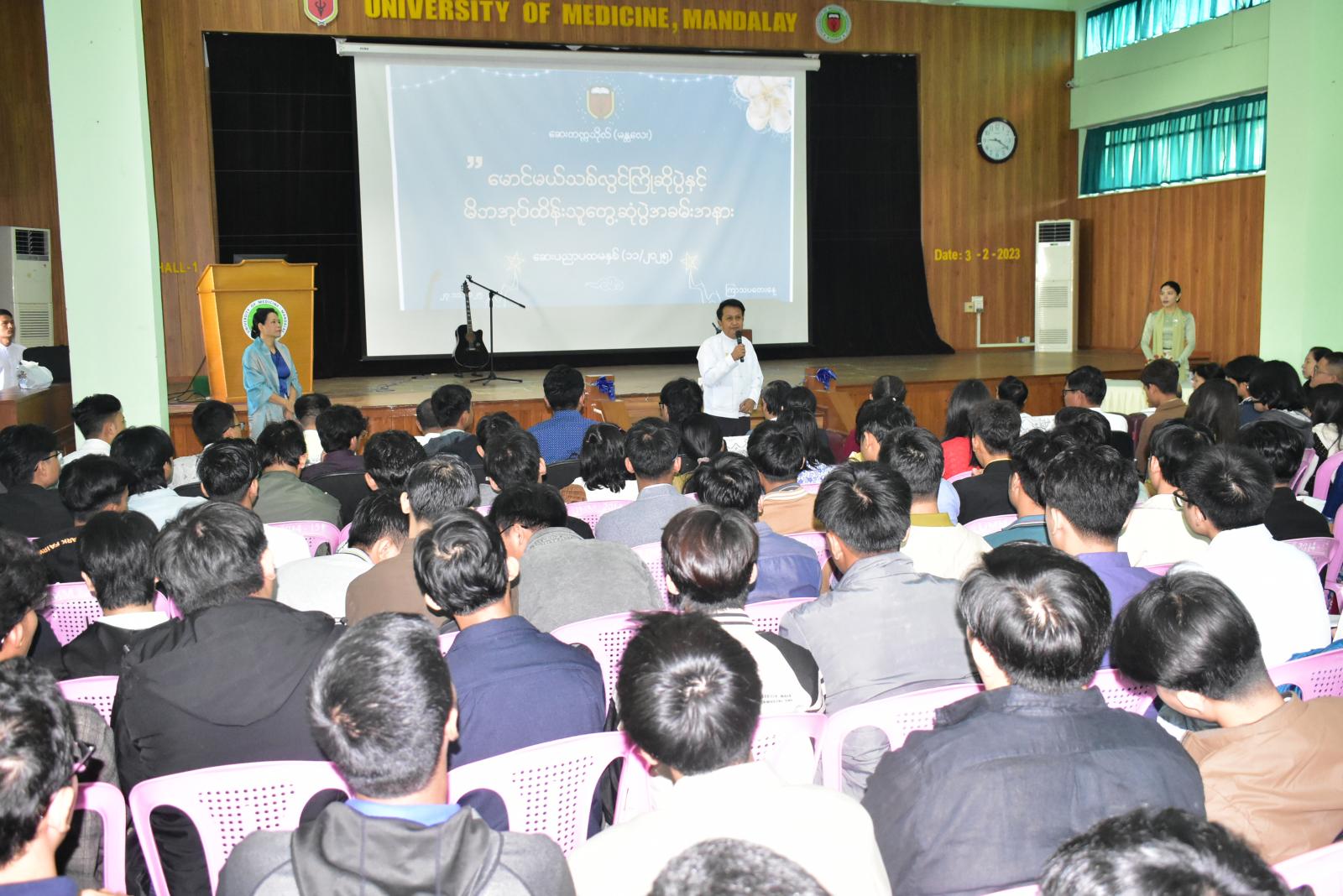 ရှေးဦးစွာ ဆေးတက္ကသိုလ်(မန္တလေး)၊ ပါမောက္ခချုပ် ပါမောက္ခဒေါက်တာမျိုးသက်တင်က ကြိုဆိုနှုတ်ခွန်းဆက်စကားပြောကြားခဲ့ပြီး ဆေးတက္ကသိုလ် (မန္တလေး) ရှိ ဘာသာရပ်ဆိုင်ရာ ပါမောက္ခ/ဌာနမှူးများနှင့် မိတ်ဆက်ခြင်းများ ဆောင်ရွက်ခဲ့ကြသည်။