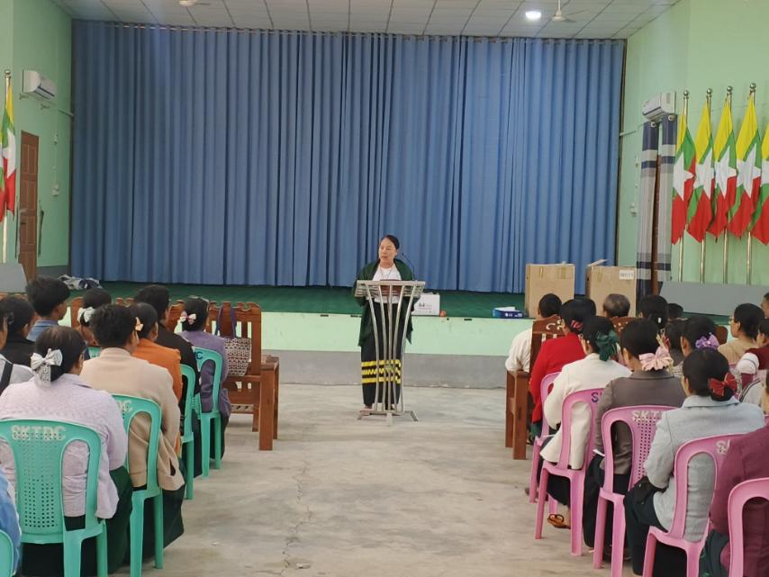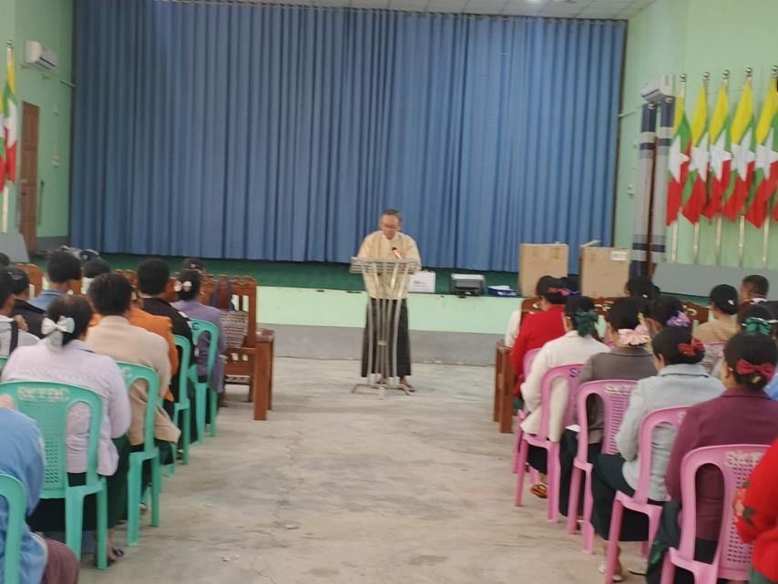၎င်းနောက် သင်တန်းကို စတင်ပို့ချခဲ့ရာ မြို့နယ်ရွေးကောက်ပွဲကော်မရှင်အဖွဲ့ခွဲ မြို့နယ်ရွေးကောက်ပွဲအရာရှိ အတွင်းရေးမှူး ဦးအောင်ဆန်းဦးက မဲရုံမှူး၊ ဒုမဲရုံမှူးများ၏ လုပ်ငန်းလမ်းညွှန်ချက်များနှင့်ပတ်သက်သည့် အကြောင်းအရာများကိုလည်းကောင်း၊ မြို့နယ်ကော်မရှင်အဖွဲ့ဝင် ဦးဝင်းကိုမှ မဲရုံမှူး၊ ဒုမဲရုံမှူးများ၏ စိစစ်ဆောင်ရွက်ရမည့် အချက်များ၊ လုပ်ငန်းလမ်းညွှန်မှုလက်ဆွဲစာအုပ်ပါ ကောက်နှုတ်ချက်များအားလည်းကောင်း၊ မြို့နယ်ရွေးကောက်ပွဲကော်မရှင်အဖွဲ့ဝင် ဦးသန်းဝင်းမှ မဲရုံတွင်အသုံးပြုမည့် ပုံစံစာရွက်များနှင့်ပတ်သက်၍လည်းကောင်း ရှင်းလင်းပို့ချခဲ့သည်။ ဆက်လက်၍ မြို့နယ်ဥပဒေအရာရှိ ဦးကိုကိုအောင်က လွှတ်တော်ရွေးကောက်ပွဲ ဥပဒေ၊ ပြစ်မှု ပြစ်ဒဏ်နှင့် ရဲရေးပိုင်မှု ကိစ္စရပ်များအားလည်းကောင်း အသီးသီးရှင်းလင်းဆွေးနွေးပို့ချခဲ့ပြီး သင်တန်းသား ဆရာ/ဆရာမများက သိရှိလိုသည်များ ပြန်လည်မေးမြန်းဆွေးနွေးခဲ့ကြသည်။