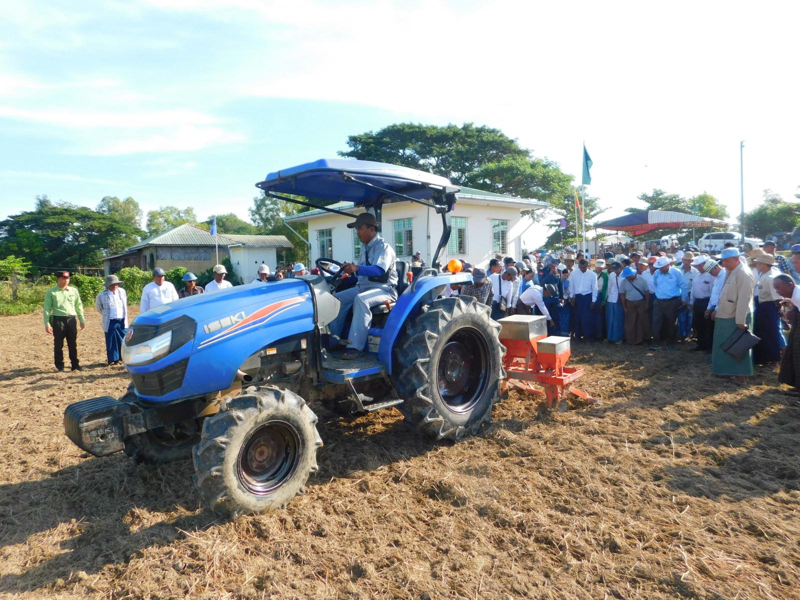 ဆက်လက်၍ မြို့နယ်တာဝန်ရှိသူများက ဒေသခံတောင်သူများအား နွေစပါးမျိုးစေ့ချကိရိယာ (Drum Seeder) ဖြင့် နွေစပါးလက်တွေ့စိုက်ပျိုးပြသပေးနေမှုအ ခြေအနေများနှင့် ရေဆင်းစပ်မျိုး ဆောင်းသီးနှံ (နေကြာ) ကို မျိုးစေ့ချစက်ဖြင့် လက်တွေစိုက်ပျိုးပြသပေးနေမှုအခြေအနေများအား တိုင်းဒေသကြီးနှင့်ခရိုင်တာဝန်ရှိသူများက လှည်လည်ကြည့်ရှုအားပေးခဲ့ကြကြောင်း သိရသည်။