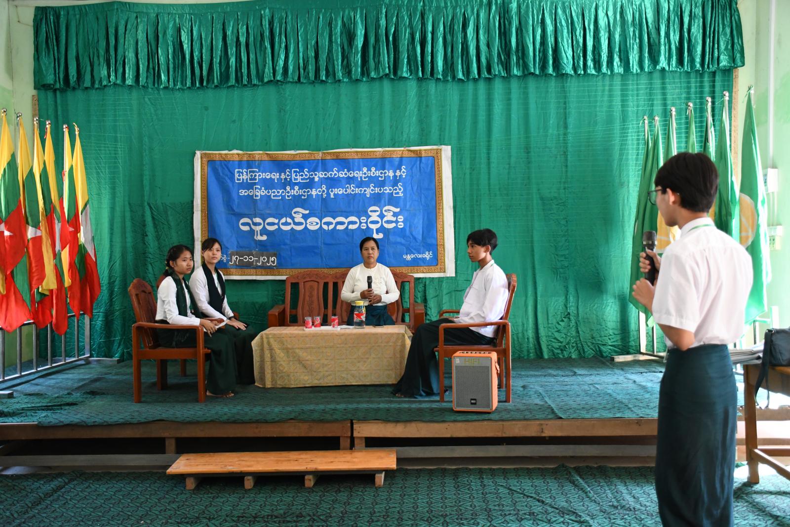 မန္တလေးတိုင်းဒေသကြီး၊ ပြည်ကြီးတံခွန်မြို့နယ် အမှတ်(၅) အခြေခံပညာအထက်တန်းကျောင်းခွဲ၌ ယနေ့ မွန်းလွဲ ၁ နာရီက လူငယ်စကားဝိုင်း ကျင်းပသည်။