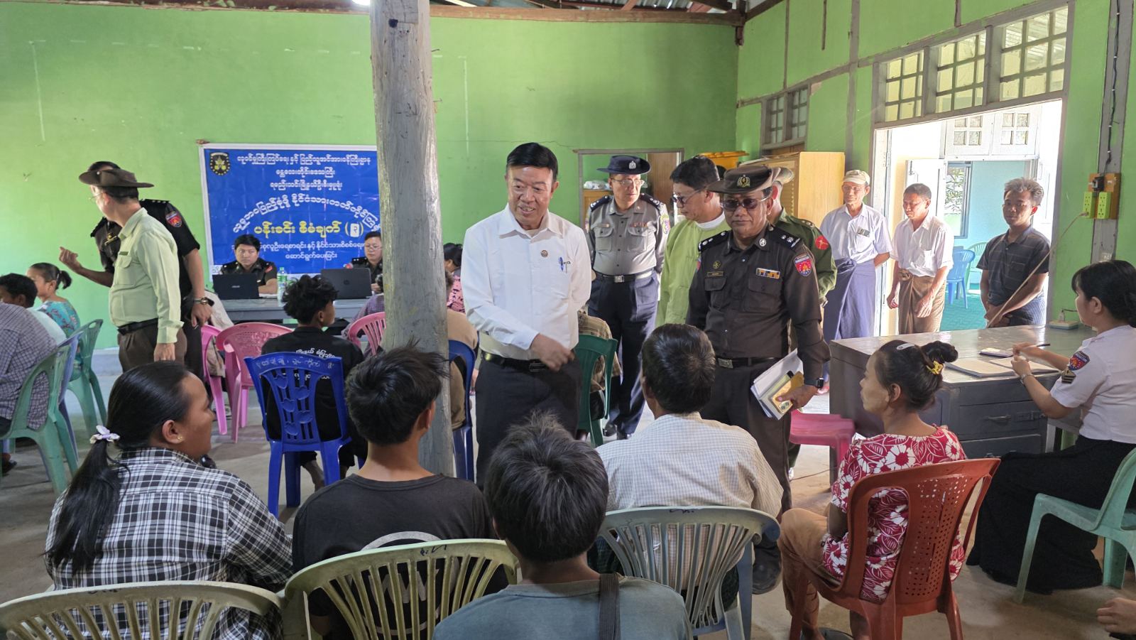 ထို့နောက်တိုင်းဒေသကြီးဝန်ကြီးနှင့်အဖွဲ့သည် သင်းရတနာခန်းမတွင် မြန်မာအီလက်ထ ရောနစ်မဲပးစက်(MEVM)များ ထိန်းသိမ်းထားရှိမှုတို့ကို ကြည့်ရှုစစ်ဆေးခဲ့ပြီး ရပ်ကွက်/ကျေးရွာ အုပ်စုအလိုက် အိမ်တိုင်ရာရောက်စနစ်ဖြင့် မဲဆန္ဒရှင်စာရင်းများ ပြည့်စုံမှန်ကန်စေရေးအတွက် မြို့နယ်အဆင့်ဌာနဆိုင်ရာ ကွင်းဆင်းစိစစ်ရေး အဖွဲ့ (၆၄)ဖွဲ့ ကွင်းဆင်းဆောင်ရွက်လျက်ရှိသည့် သိမ်ကုန်းကျေးရွာအုပ်စုမှ မဲဆန္ဒရှင်များမဲစာရင်းလာရာက်ကြည့်ရှုနေမှုနှင့် မဲဆန္ဒရှင်ပြည်သူများ နိုင်ငံသားအခွင့်အရေး မဆုံးရှုံးစေရေးအတွက် မဲရုံသို့လာရာက်၍ မဲပေးနိုင်ရေး၊ မဲဆန္ဒရှင်စာရင်းတွင်ပါရှိရေးတို့ကို မှာကြားသည်။ ဆက်လက်၍ လူဝင်မှုကြီးကြပ်ရေးနှင့် ပြည်သူ့အင်အားဝန်ကြီးဌာန မြို့နယ်ဦးစီးမှူးနှင့်ဝန်ထမ်းများက မြေပြင်ကွင်းဆင်း၍ အသက်(၁၈)နှစ်အထက် နိုင်ငံသားစိစစ်ရေးကတ်မရှိသူများအားပြုလုပ်ပေးခြင်း၊ နိုင်ငံသားစိစစ်ရေး ကတ်ပြားပျောက်ဆုံး/ပျက်စီးသူများအား ဆောင်ရွက်ပေးခြင်းနှင့် UID ကောက်ယူခြင်းများကွင်းဆင်းဆောင်ရွက်ပေးနေမှုများကို ကြည့်ရှုအားပေးသည်။