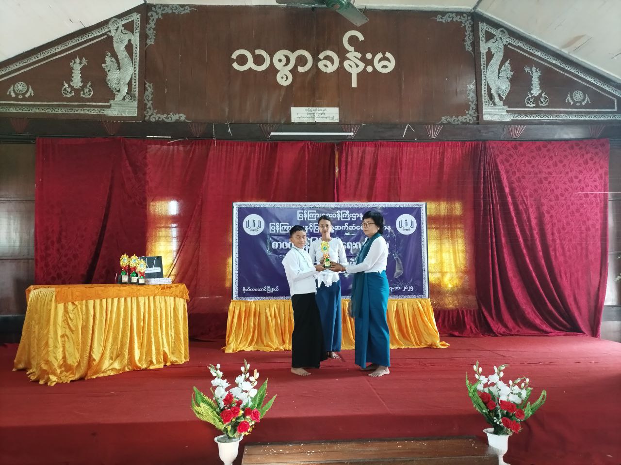 ထို့နောက် စာရေးဆရာမသုခေတ်မေက “စာဖတ်ခြင်းအကျိုးကျေးဇူးများ” ခေါင်းစဉ်ဖြင့် အသိပညာပေးဟောပြောခြင်း၊ မြို့နယ်အားကစားနှင့်ကာယပညာဦးစီးဌာန မြို့နယ်အားကာမှူး ဒေါ်မြတ်လေးနွယ်ကအားကစားနှင့်ကျန်းမာရေးအကြောင်း အသိပညာပေးဟောပြောပြီးနောက် ဆုပေးပွဲအခမ်းအနားကို ဆက်လက်ကျင်းပရာ ကဗျာရွတ်ဆိုပြိုင်ပွဲ၊ ပုံပြင်ပြောပြိုင်ပွဲ၊ ကျပန်းစကားပြောပြိုင်ပွဲနှင့် စာဖတ်စွမ်းရည်ပြိုင်ပွဲများတွင် ဆုရရှိကြသူများနှင့် အထူးဆုရရှိသူများအား မြို့နယ်စီမံခန့်ခွဲရေးနှင့် အုပ်ချုပ်ရေးကော်မတီဥက္ကဋ္ဌ ဦးစိုးလှိုင်မောင်နှင့် အဖွဲ့ဝင်ဦးအောင်မိုးကျော်၊ ဌာနဆိုင်ရာတာဝန်ရှိသူများ၊ မြို့နယ်အမျိုးသမီးရေးရာအဖွဲ့ဥက္ကဋ္ဌ ဒေါ်ခင်ညွန့်နှင့် ပြန်ကြားရေးနှင့်ပြည်သူ့ဆက်ဆံရေးဦးစီးဌာန ဒေါ်ခင်ဝင်းကြည်တို့ကလည်းကောင်း ဆုလက်ဆောင်ပစ္စည်းများ ပေးအပ်ခဲ့ကြသည်။