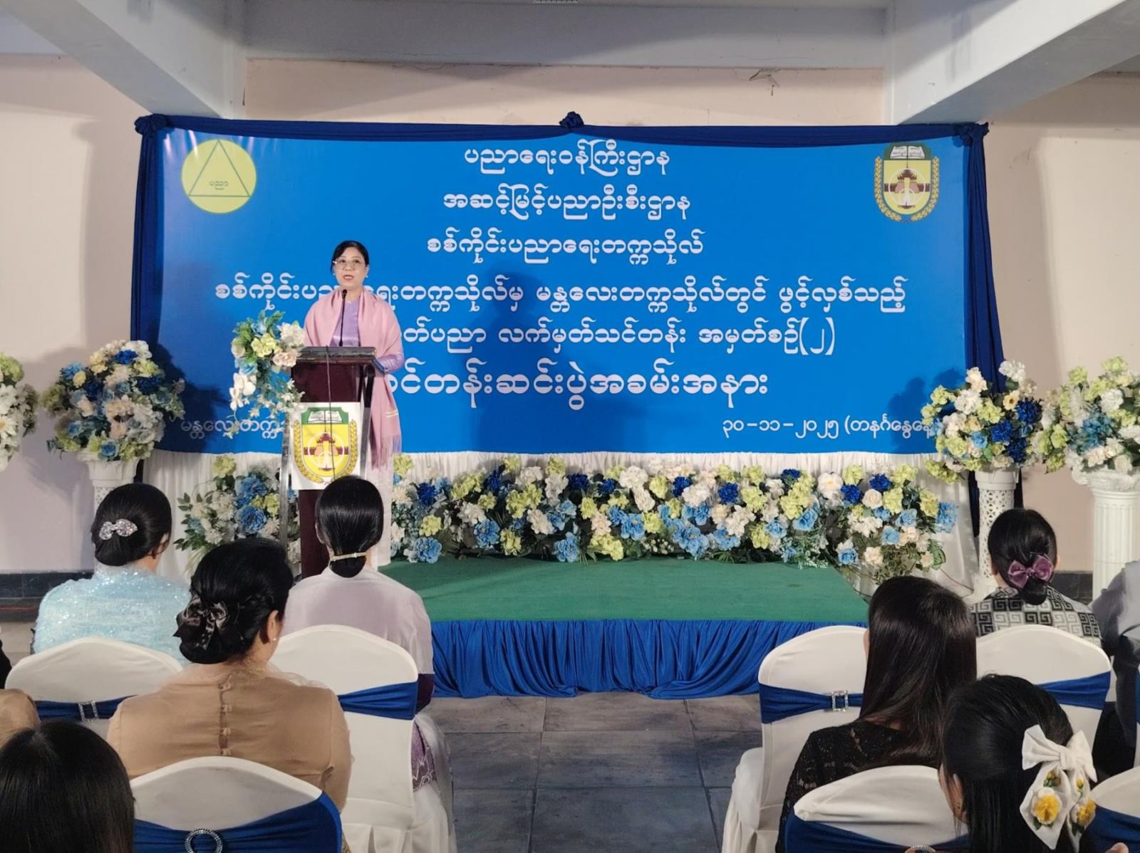 ရှေးဦးစွာ သင်တန်းဆင်းပွဲနှင့်ပတ်သက်၍ စစ်ကိုင်းပညာရေးတက္ကသိုလ် ခေတ္တပါမောက္ခချုပ် ဒေါက်တာအေးသက်သက်ဝင်းက အဖွင့်အမှာစကားပြောကြားခဲ့သည်။