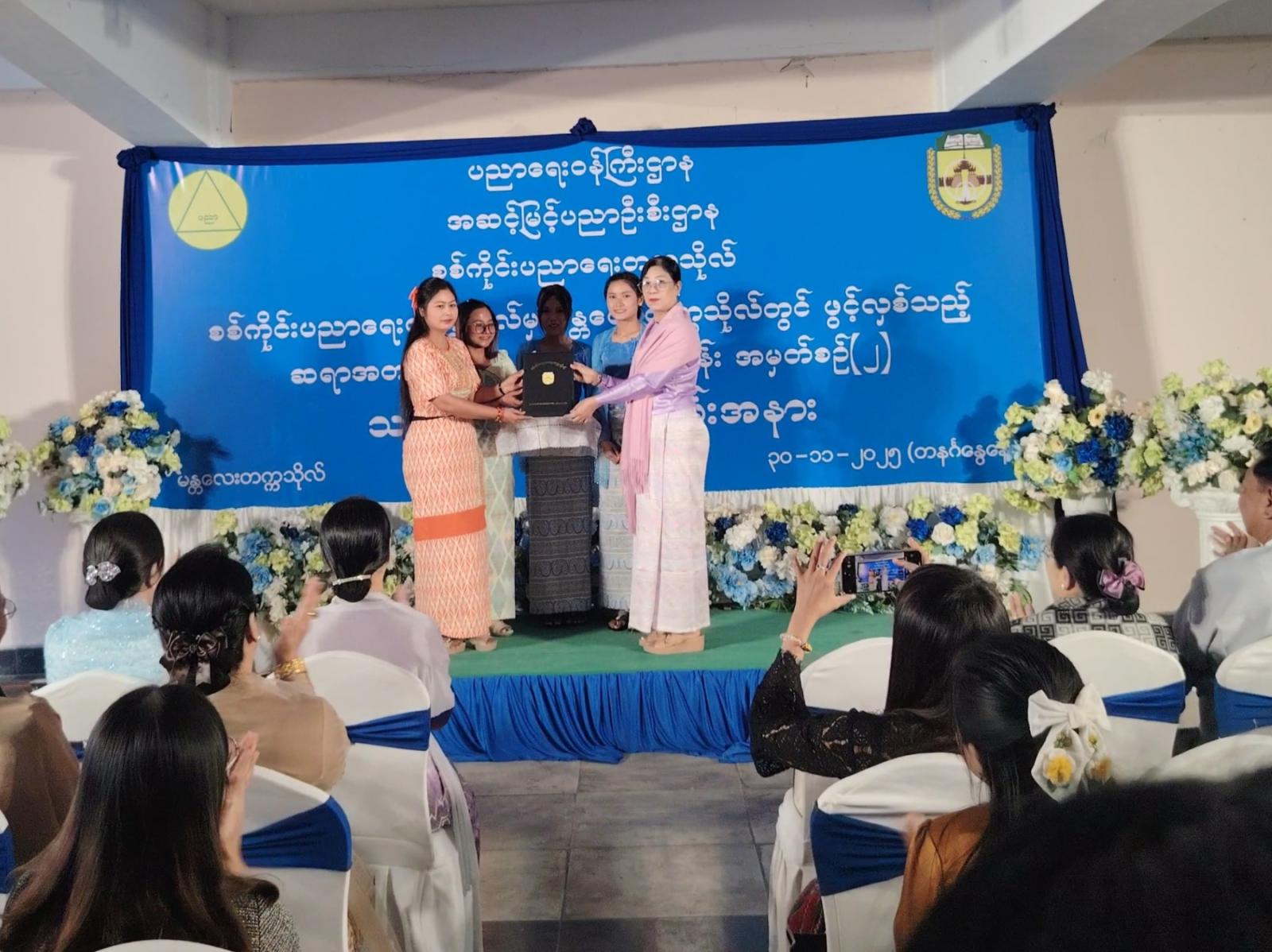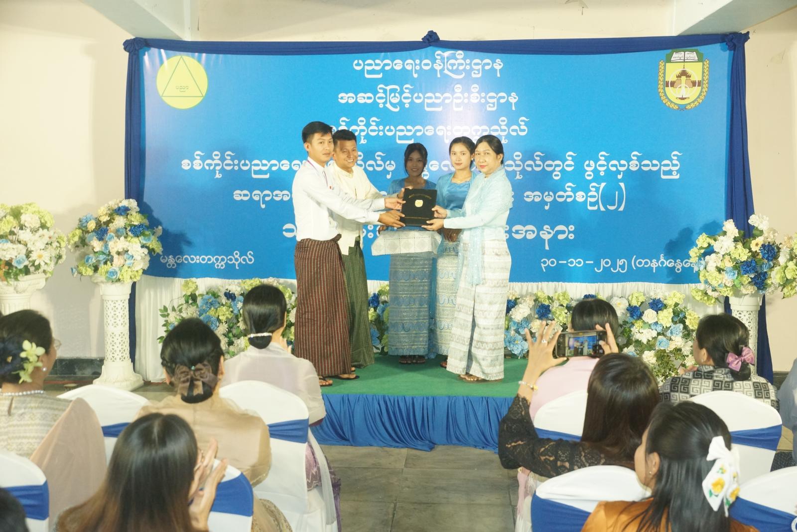 ဆက်လက်ပြီး စစ်ကိုင်းပညာရေးတက္ကသိုလ် ခေတ္တပါမောက္ခချုပ် ဒေါက်တာအေးသက်သက်ဝင်း၊ စစ်ကိုင်းပညာရေးတက္ကသိုလ် ဒုတိယပါမောက္ခချုပ်များမှ သင်တန်းသား၊ ကျောင်းသူများအား သင်တန်းပြီးမြောက်အောင်မြင်ကြောင်း လက်မှတ်များအား အသီးသီးချီးမြှင့် ပေးခဲ့သည်။