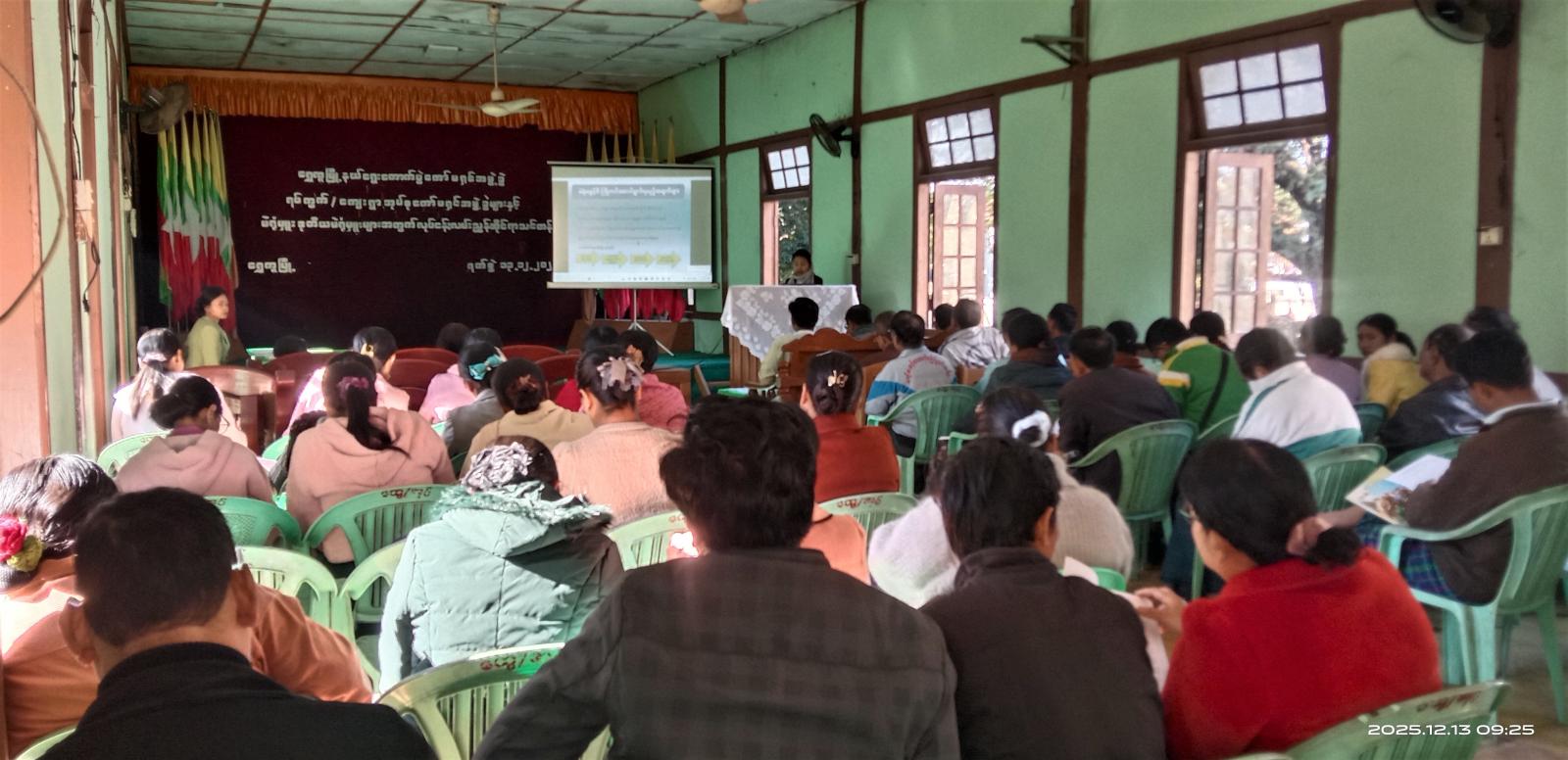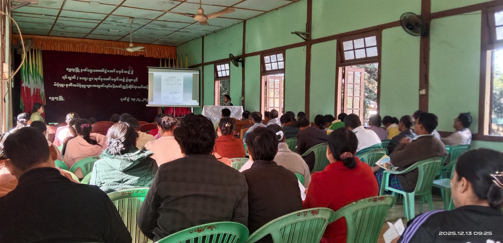 ထို့နောက် သင်တန်းကို ဆက်လက်ပို့ချခဲ့ရာ မြို့နယ်အတွင်းရှိ မဲရုံ(၁၂)ရုံတွင် တာဝန်ထမ်း ဆောင်ကြမည့် ရပ်ကွက်/ကျေးရွာ ကော်မရှင်အဖွဲ့ခွဲ အဖွဲ့ဝင်များ၊ မဲရုံမှူး၊ ဒုတိယမဲရုံမှူးများအား ရွေးကောက်ပွဲကျင်းပစဉ်အတွင်း ဆောင်ရွက်ရမည့် လုပ်ငန်းလမ်းညွှန်ချက်အကြောင်းအရာများ၊ ရွေးကောက်ပွဲဆိုင်ရာ ဥပဒေ၊ နည်းဥပဒေများ အီလက်ထရောနစ်မဲပေးစက်များ ကိုင်တွယ်အသုံးပြုရာတွင် စစ်ဆေးဆောင်ရွက်ရမည့် အသေးစိတ် အကြောင်းအရာများကို မြို့နယ်ရွေးကောက်ပွဲကော်မရှင်ရုံးမှ ဒုတိယဦးစီးမှူး ဒေါ်အေမီဗိုလ်နှင့် ဒေါ်ယွန်းယွန်းအိတို့က စာတွေ့၊ လက်တွေ့ဖြင့် အသေးစိတ်ဆွေးနွေးပို့ချသွား မည်ဖြစ်ကြောင်းနှင့် အဆိုပါသင်တန်းအား ဒီဇင်ဘာလ (၁၄) ရက်နေ့အထိ ဆွေးနွေးပို့ချပေးသွားမည်ဖြစ်ကြောင်း သိရသည်။