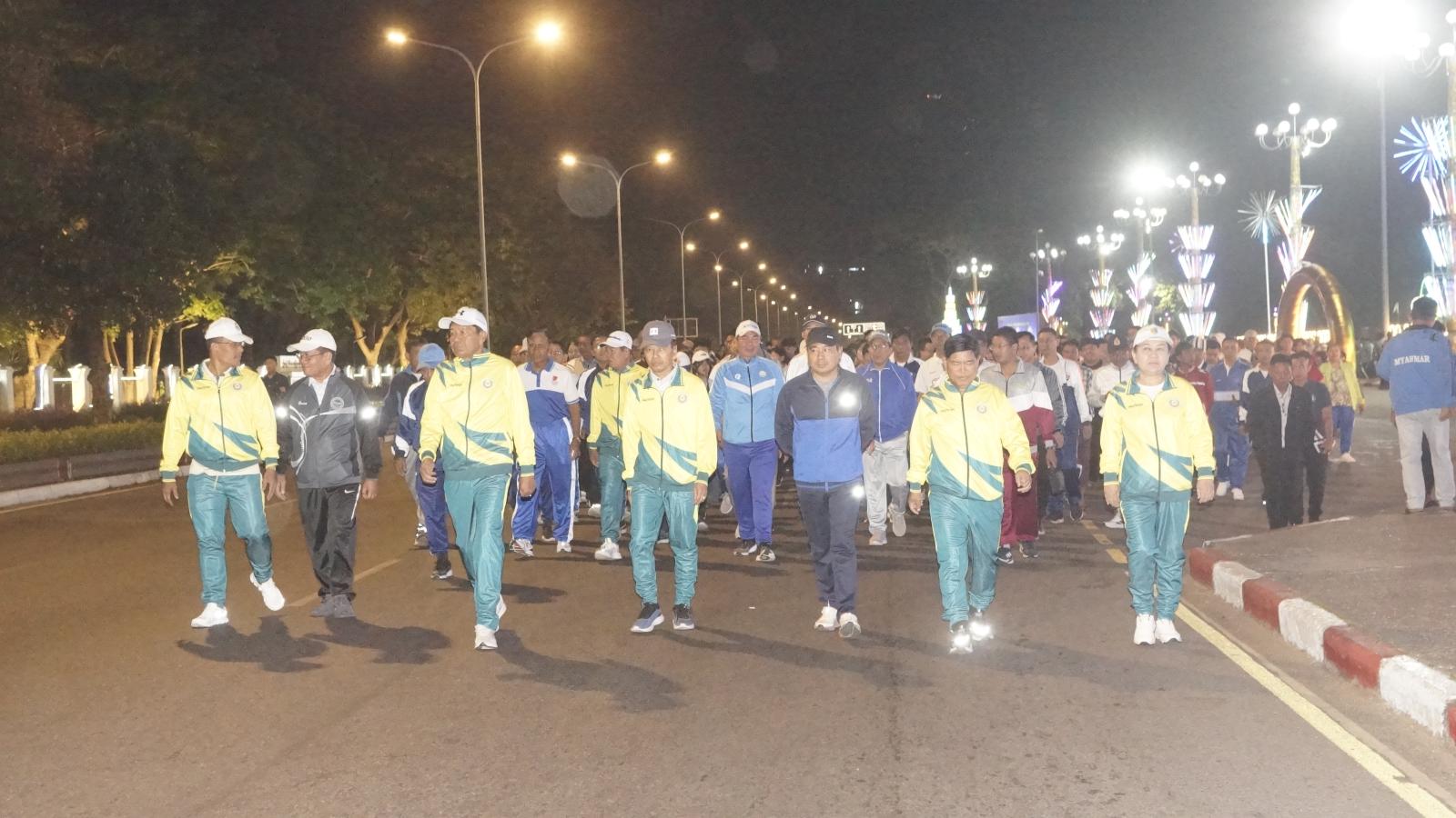 လူထုစုပေါင်းလမ်းလျှောက်ပွဲကို ရန်ကုန်တိုင်းဒေသကြီးအစိုးရ အဖွဲ့ဝန်ကြီးချုပ် ဦးစိုးသိန်းက သေနတ်ပစ်ဖောက်၍ ဖွင့်လှစ်ပေးခဲ့ပြီး လမ်းလျှောက်ပွဲသို့ ရောက်ရှိနေကြသူများနှင့်အတူ ပြည်လမ်း၊ အလုံလမ်း၊ ဦးဝိစာရလမ်းမှ ပြည်သူ့ရင်ပြင်သို့စုပေါင်း လမ်းလျှောက်ခဲ့ကြသည်။ ယင်းနောက် ပြည်သူ့ရင်ပြင်၌ ကိုယ်လက်ကြံ့ခိုင်ရေး လေ့ကျင့်ခန်းကို စုပေါင်းဆောင်ရွက်ခဲ့ကြကြောင်း သိရှိရသည်။