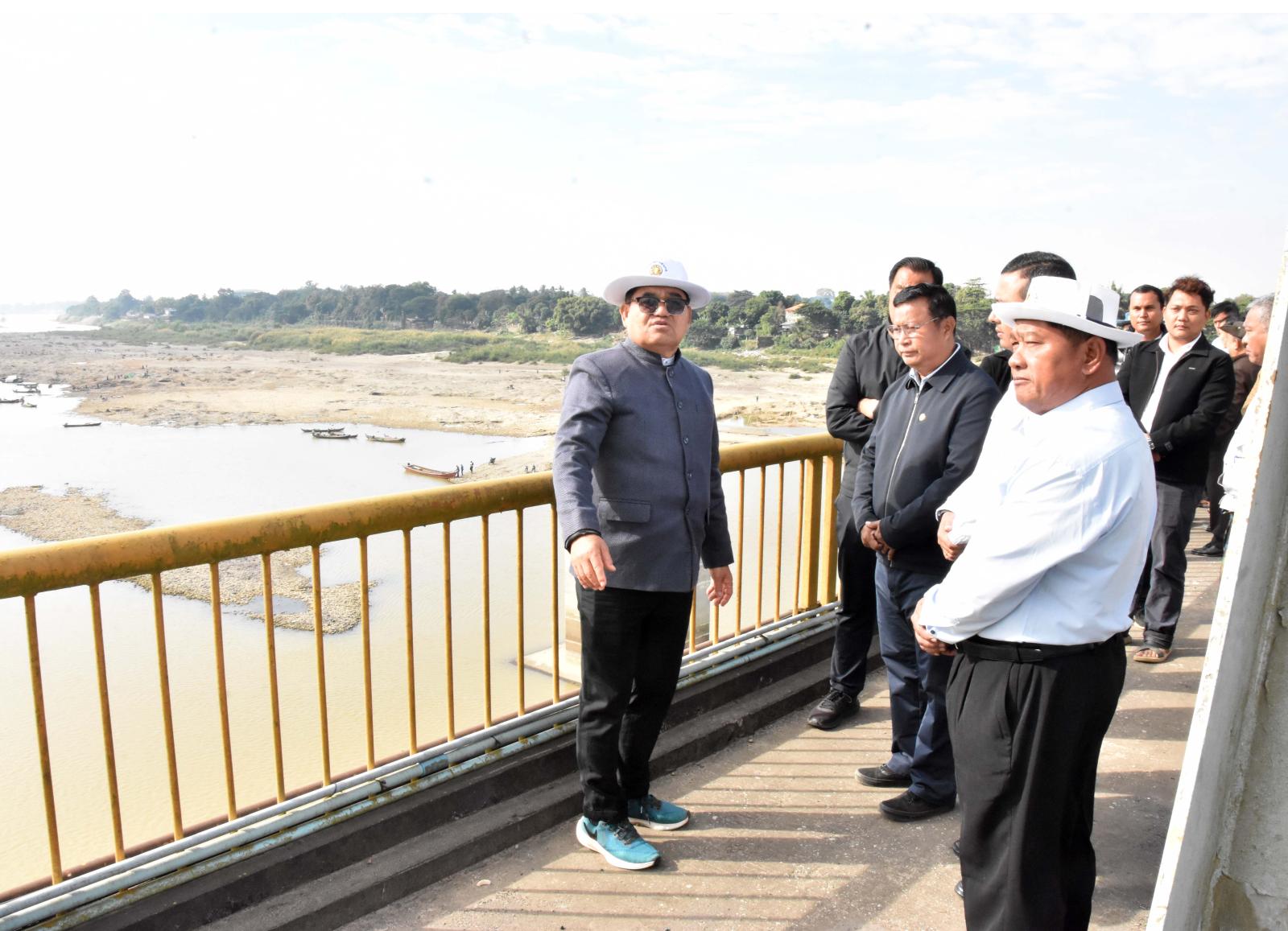 ထို့နောက် ပြည်နယ်ဝန်ကြီးချုပ်နှင့်အဖွဲ့ဝင်များသည် ဗလမင်းထင်တံတားပေါ်မှတစ်ဆင့် ယခင်နှစ်က ဒေသအစီအစဉ်ဖြင့် ဆောင်ရွက်ခဲ့သည့် ဗလမင်းထင်တံတားအောက်ဘက်၌ သောင်းတူး ဖော်ခြင်းလုပ်ငန်း အလျား (၄၂၀၀)ပေ၊ အကျယ် (၁၆၅)ပေ၊ အနက် ရေစစ်မျဉ်းအောက် (၁ ဒဿမ ၈) မီတာဆောင်ရွက်နိုင်ခဲ့မှုကြောင့် သဲသောင်ဖြစ်ထွန်းမှု နည်းပါးခဲ့ပြီး ရေကြောင်းလျင်မြန်စွာစီးဆင်းနေ မှု အခြေအနေများနှင့် တံတားအမှတ်(၂) ရေလယ်တိုင် တည်ဆောက်နေမှု အခြေအနေများကို ကြည့် ရှုစစ်ဆေးခဲ့ကြသည်။