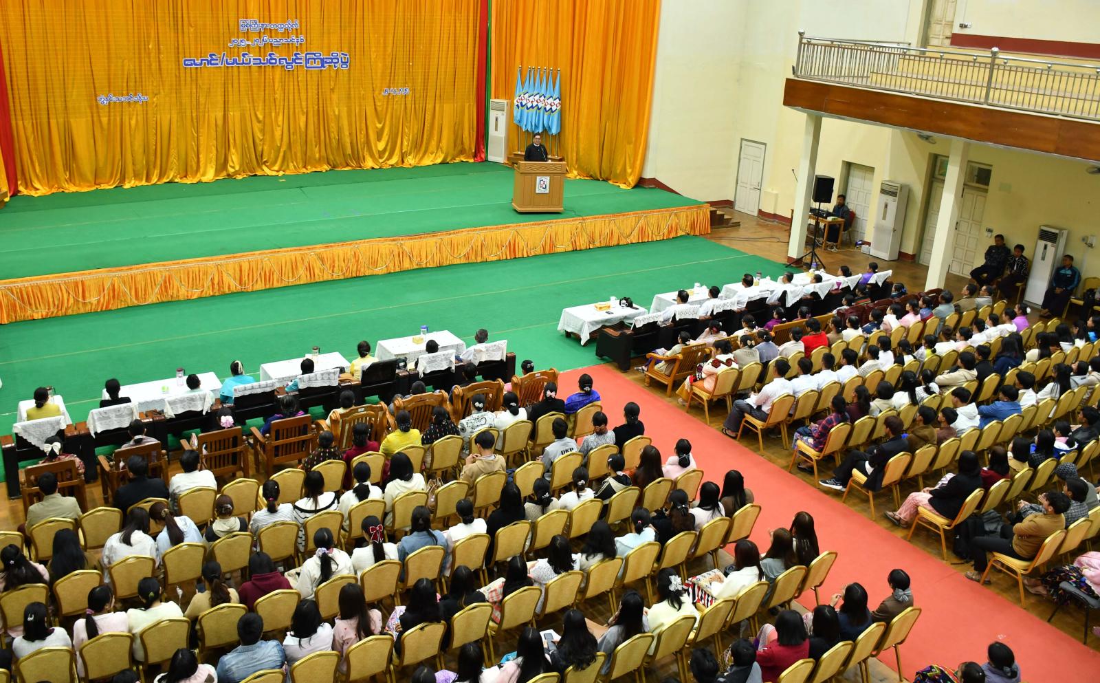 ကချင်ပြည်နယ်၊ မြစ်ကြီးနားတက္ကသိုလ်၏ ၂၀၂၅-၂၀၂၆ ပညာသင်နှစ်၊ မောင်မယ်သစ်လွင် ကြိုဆိုပွဲအခမ်းအနားကို ဒီဇင်ဘာ ၂၄ ရက်က မြစ်ကြီးနားတက္ကသိုလ် ဘွဲ့နှင်းသဘင်ခန်းမ၌ ကျင်းပပြုလုပ်ရာ ပြည်နယ်ဝန်ကြီးချုပ် ဦးခက်ထိန်နန် တက်ရောက်အားပေးချီးမြှင့်သည်။