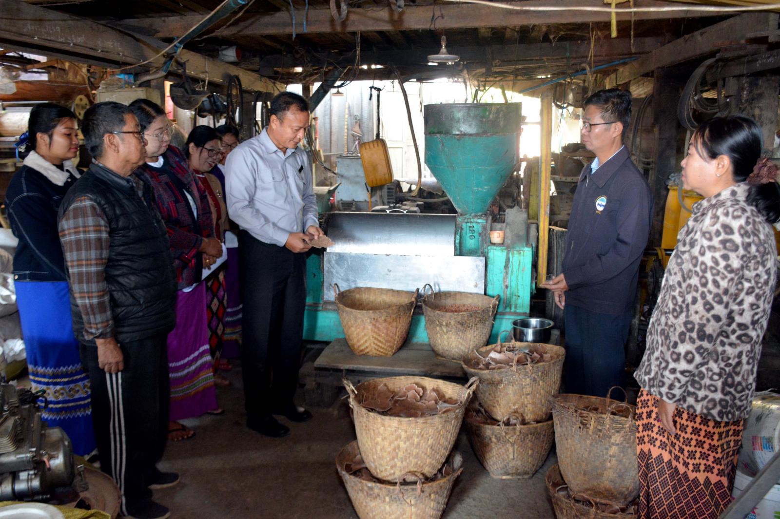 ကချင်ပြည်နယ် မိုးညှင်းမြို့နယ်ဒေသအတွင်း စားသုံးဆီဖူလုံမှုရှိစေရေးအတွက် ဆီစက်လုပ်ငန်းရှင်များ ဖွံ့ဖြိုးရေးချေးငွေဖြင့် အကောင်အထည်ဖော်ဆောင်ရွက်လျက်ရှိရာ ယနေ့နံနက် (၁၀) နာရီက မိုးညှင်းမြို့ စိမ်းရတနာမွန် (တောင်ပိုင်း) ရပ်ကွက်ရှိ မြတ်သုခဆီစက်လုပ်ငန်းအား တာဝန်ရှိသူများမှ ကွင်းဆင်းစစ်ဆေးကြကြောင်း သိရသည်။