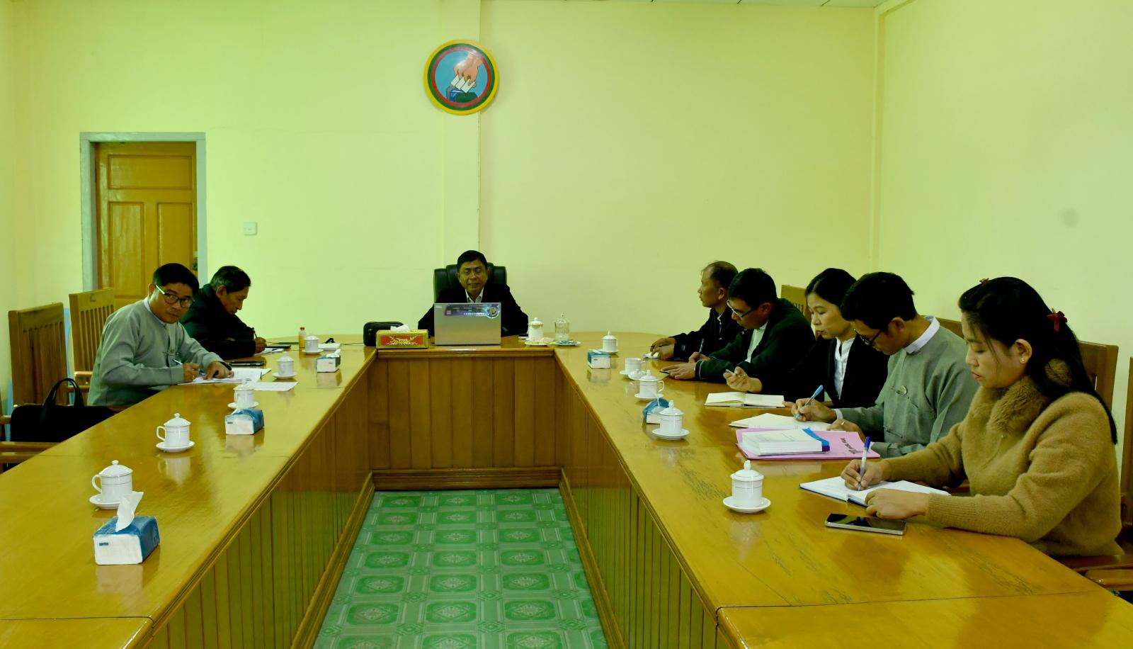 ဆက်လက်၍ ပြည်ထောင်စုရွေးကောက်ပွဲကော်မရှင်အဖွဲ့ဝင် ကချင်ပြည်နယ်တာဝန်ခံသည် ပြည်နယ်ရွေးကောက်ပွဲကော်မရှင်အဖွဲ့ခွဲရုံး အစည်းအဝေးခန်းမ၌ ပြည်နယ်အတွင်း ပါတီစုံဒီမိုကရေစီ အထွေထွေရွေးကောက်ပွဲ အပိုင်း(၂) အောင်မြင်စွာကျင်းပနိုင်ရေး လုပ်ငန်းညှိနှိုင်းအစည်းအဝေးသို့ တက်ရောက်သည်။