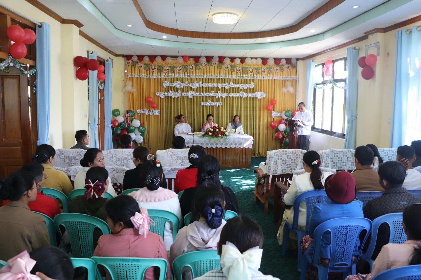 ယင်းနောက် သဘာပတိမှ ဦးဆောင်၍ ခရစ္စမတ်သီချင်းများ သီဆိုကျူးဧခြင်း၊ သိက္ခာတော်ရ ဆရာတော်များမှ ကောင်းချီးတောင်းခံခြင်း၊ ခရစ္စမတ်တရားဒေသနာဟောပြော ဝေငှသက်သေခံခြင်းနှင့် စည်ပင်သာယာရေးအဖွဲ့ ဝန်ထမ်းများက Group Song ဖြင့် တေးသီချင်းများသီဆိုခဲ့ကြပြီး ပြည်နယ်ဝန်ကြီးက ဝန်ထမ်းမိသားစုများအတွက် အခြေခံစားသောက်ကုန်ဖြစ်သည့် ဆန်နှင့်ဆီများအား ထောက်ပံ့ပေးအပ်ခဲ့ကြောင်းသိရသည်။
