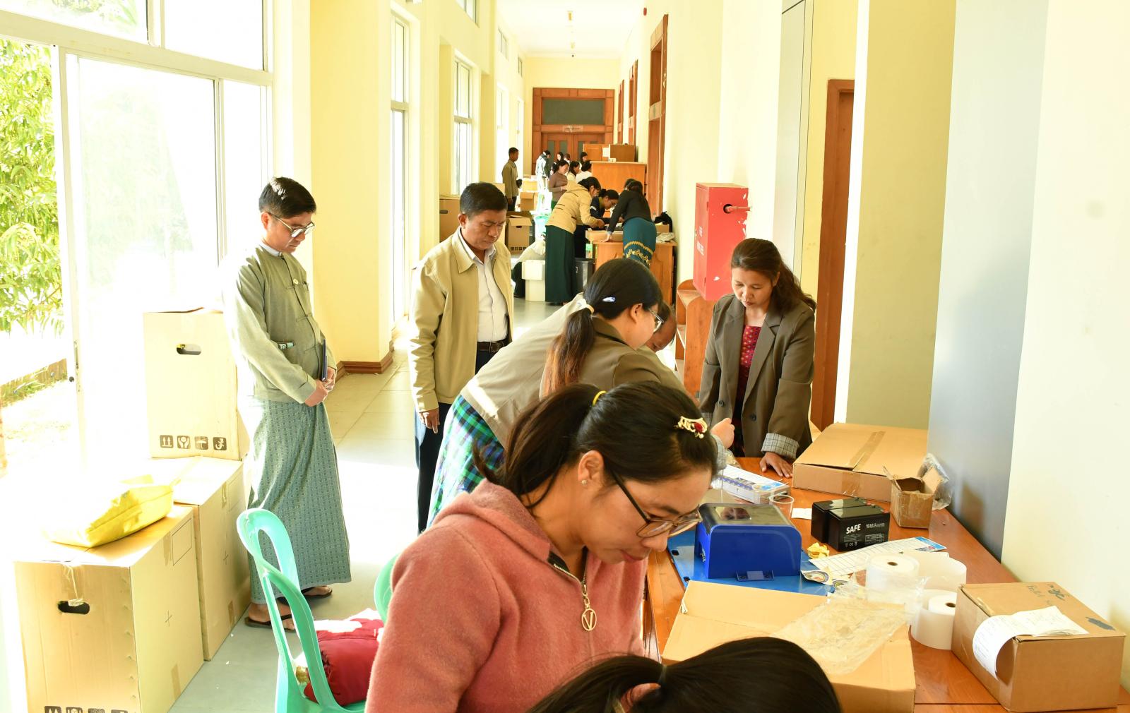 ပြည်ထောင်စုရွေးကောက်ပွဲကော်မရှင်အဖွဲ့ဝင် ကချင်ပြည်နယ်တာဝန်ခံ ဦးခင်ဇော်သည် ယနေ့နံနက်ပိုင်းက ကချင်ပြည်နယ်လွှတ်တော်ရုံး၌ ရွေးကောက်ပွဲဆိုင်ရာလုပ်ငန်းစဉ်များ အဆင်ပြေ ချောမွေ့စွာ ဆောင်ရွက်နိုင်ရေးအတွက် မြန်မာအီလက်ထရောနစ် မဲပေးစက်ကိုင်တွယ်အသုံးပြုနည်း မွမ်းမံသင်တန်းဖွင့်လှစ်နေမှု အခြေအနေများကို ကွင်းဆင်းကြည့်ရှုစစ်ဆေးခဲ့ကြောင်း သိရသည်။