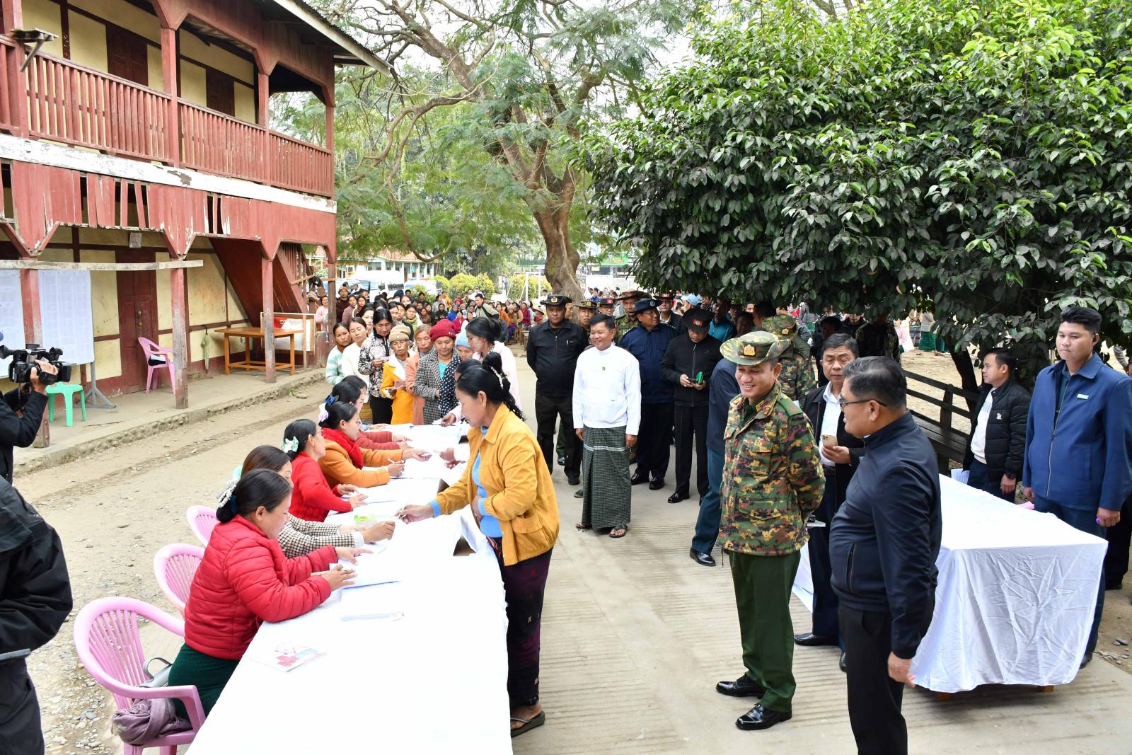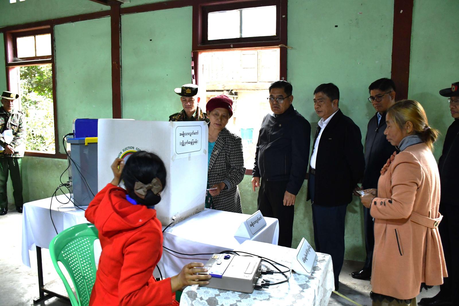 ကချင်ပြည်နယ်ဝန်ကြီးချုပ် ဦးခက်ထိန်နန်၊ ပြည်ထောင်စုရွေးကောက်ပွဲကော်မရှင်အဖွဲ့ဝင် ကချင်ပြည်နယ်တာဝန်ခံ ဦးခင်ဇော်၊မြောက်ပိုင်းတိုင်းစစ်ဌာနချုပ်တိုင်းမှူး ဗိုလ်ချုပ်အောင်ဇော်ထွေး နှင့် တာဝန်ရှိသူများသည် ဇန်နဝါရီ ၃ ရက် ညနေ ၃ နာရီက ပါတီစုံဒီမိုကရေစီအထွေထွေရွေးကောက် ပွဲ အပိုင်း(၂) အဖြစ် ဆက်လက်ကျင်းပမည့် ဝိုင်းမော်မြို့နယ်၊ မိုင်းနားကျေးရွာအတွင်းရှိ မဲဆန္ဒရှင် ပြည်သူများ ဆန္ဒမဲပေးရာတွင် ကြန့်ကြာမှုမရှိစေရေး အဆိုင်း (၂)ဆိုင်းခွဲ၍ လက်တွေ့စမ်းသပ် ဆန္ဒမဲ ပေးနေမှုများအား ကွင်းဆင်းကြည့်ရှုစစ်ဆေးခဲ့ကြသည်။