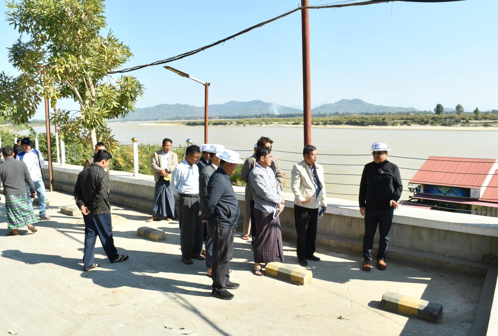 ရှေးဦးစွာ ပြည်နယ်ဝန်ကြီးချုပ်နှင့်အဖွဲ့ဝင်များသည် မြစ်ကြီးနားမြို့ စည်ပင်သာယာမြစ်ဆိပ်နေရာမှ မင်းရပ်ရပ်ကွက် ပြည်သူ့ရင်ပြင်အထိ ဧရာဝတီမြစ်ရေ အမြင့်ဆုံးမြင့်တက်လာနိုင်သည့် ၁၄၀၀ စင်တီမီတာအထက် ၁၄၅၀ စင်တီမီတာအမြင့်ထိ ကာကွယ်နိုင်မည့် ကျောက်စီရေထိန်းနံရံအပြင် အဆိုပါဧရိယာအတွင်းပါဝင်သည့် ရေစင်ကွင်းဈေးဧရိယာနှင့် မင်းရပ်ပြည်သူ့အားကွင်းတစ်လျှောက် တာရိုးလမ်း (ကမ်းနားလမ်း) အရှည် ၂၁၀၀ ပေ ဖောက်လုပ်နိုင်ရေး လမ်းတစ်လျှောက် ကွင်းဆင်း စစ်ဆေးကြခဲ့ပြီး တည်ဆောက်ပြီးစီးထားသည့် အုတ်ရိုးစီရေထိန်းနံရံအလျား ၄၉၀၀ ပေနှင့် တစ်ဆက် တည်းဖြစ်စေရေး၊ ကမ်းနားလမ်းပေါ်ပေါက်လာပါက သန့်ရှင်းသပ်ရပ်သွားမည်ဖြစ်သည့်အပြင် ရေကြီးမှုကိုလည်း ကာကွယ်နိုင်မည်ဖြစ်သည့်အတွက် မြစ်ရေနှင့်ထိစပ်လျက်ရှိသည့် မြို့ဧရိယာ ရေမိုင် ၁၈ မိုင်အတွင်း စနစ်တကျကွင်းဆင်းစစ်ဆေးဆောင်ရွက်ကြရေး တာဝန်ရှိသူများအား မှာကြားခဲ့သည်။