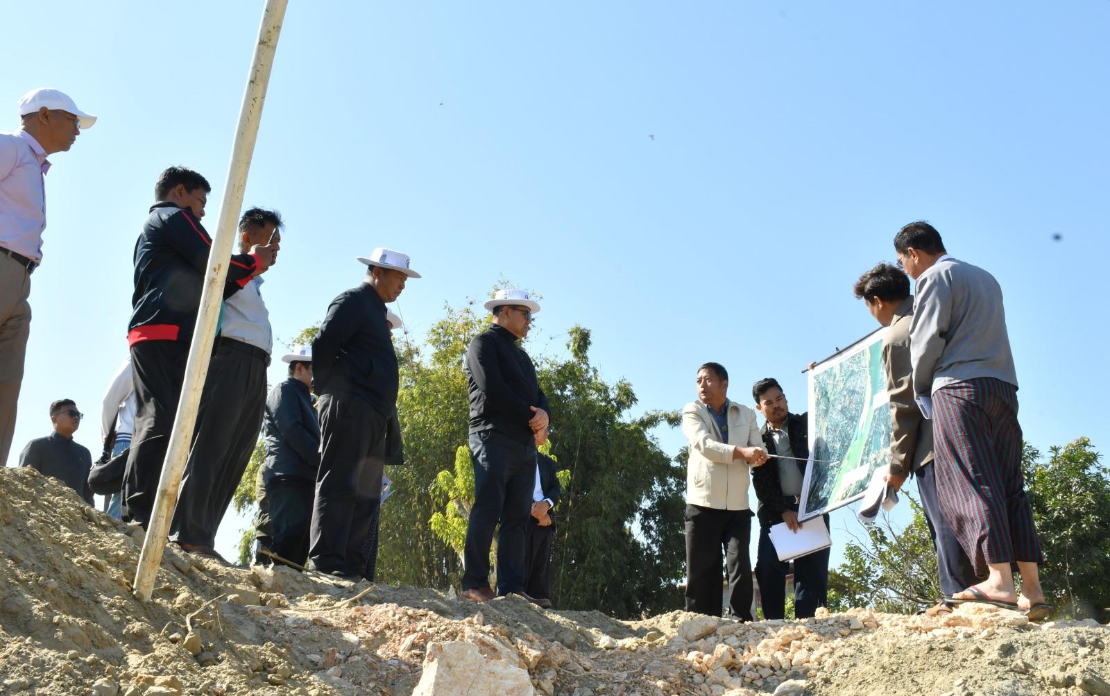 ထိုမှတစ်ဆင့် ပြည်နယ်ဝန်ကြီးချုပ်သည် မန်ခိန်ရပ်ကွက်အတွင်း တည်ဆောက်လျက်ရှိသော ပြည်နယ်တရားလွှတ်တော်ရုံး အဆောက်အဦသစ် တည်ဆောက်ရေးစီမံကိန်းသို့ သွားရောက်ကြည့်ရှု စစ်ဆေးခဲ့ကြရာ ပြည်နယ်တရားလွှတ်တော်တရားသူကြီးချုပ် ဒေါ်အေးအေးမော်နှင့် တရားရေး ဝန်ထမ်းများ၊ အဆောက်အဦအား တာဝန်ယူဆောက်လုပ်လျက်ရှိသည့် G-3 ဆောက်လုပ်ရေးကုမ္ပဏီ မှ တာဝန်ရှိသူများက တည်ဆောက်နေမှုအခြေအနေများနှင့် စပ်လျဉ်း၍ ရှင်းလင်းတင်ပြကြရာ လိုအပ်သည်များကို ညှိနှိုင်းပေါင်းစပ်ဆောင်ရွက်ပေးခဲ့သည်။