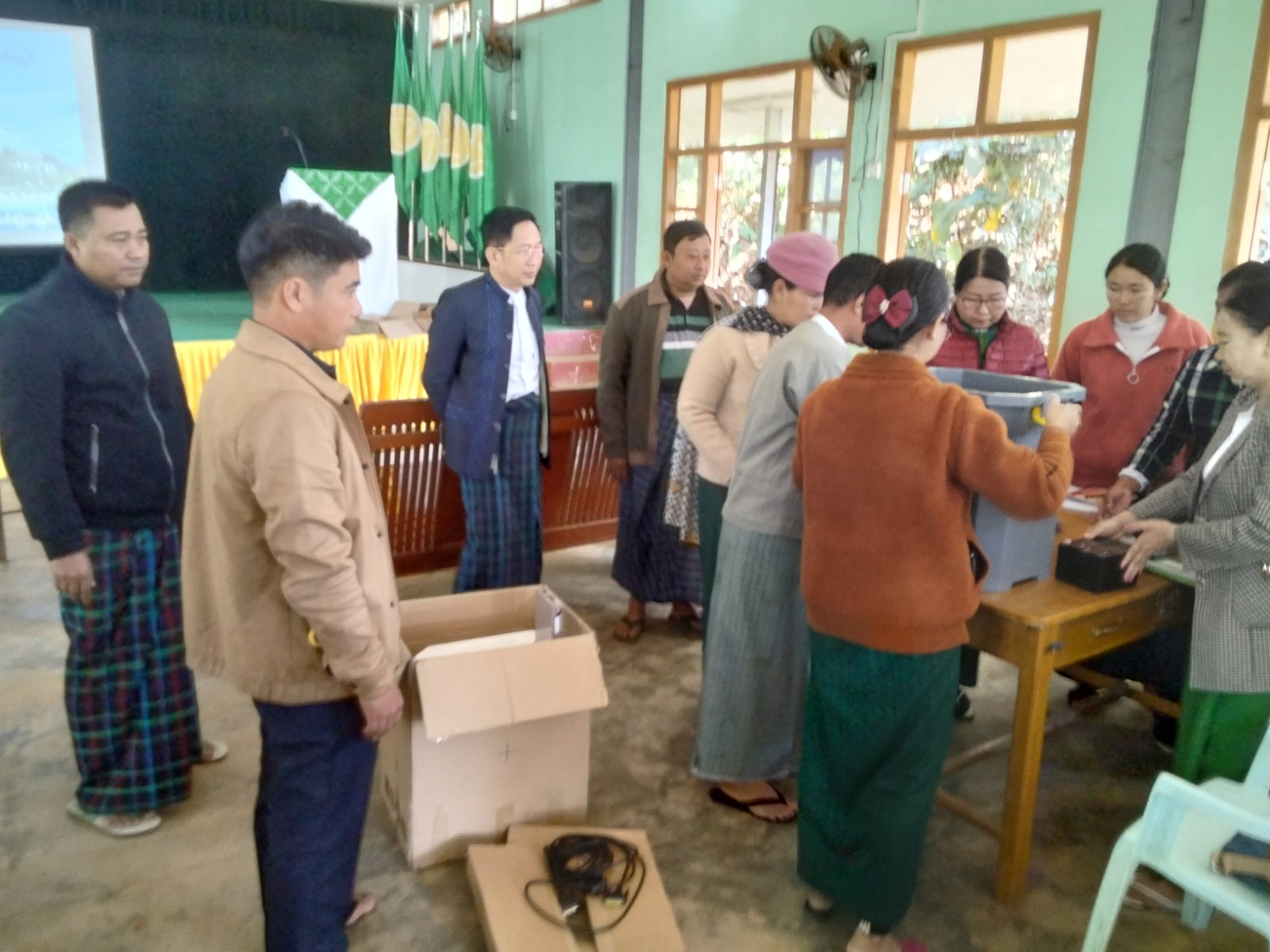 ကချင်ပြည်နယ် မိုးညှင်းခရိုင် ဖားကန့်မြို့နယ်တွင် ပါတီစုံ ဒီမိုကရေအထွေထွေရွေးကောက်ပွဲ အပိုင်း(၃) အောင်မြင်စွာကျင်းပနိုင်ရေးအတွက် ရပ်ကွက်/ကျေးရွာကော်မရှင်အဖွဲ့ခွဲဥက္ကဋ္ဌနှင့် အဖွဲ့ဝင်များ မဲရုံမှူး၊ ဒုတိယမဲရုံမှူးနှင့် မဲရုံအဖွဲ့ဝင်များ မဲပေးစက်ကိုင်တွယ်အသုံး ပြုနည်းသင်တန်း ဖွင့်ပွဲအခမ်းအနားကို ဇန်နဝါရီ ၁၁ ရက် နံနက် ၉နာရီက ဖားကန့်မြို့အခြေခံပညာ အထက်တန်းကျောင်းပညာရတနာအခန်းမ၌ ကျင်းပသည်။