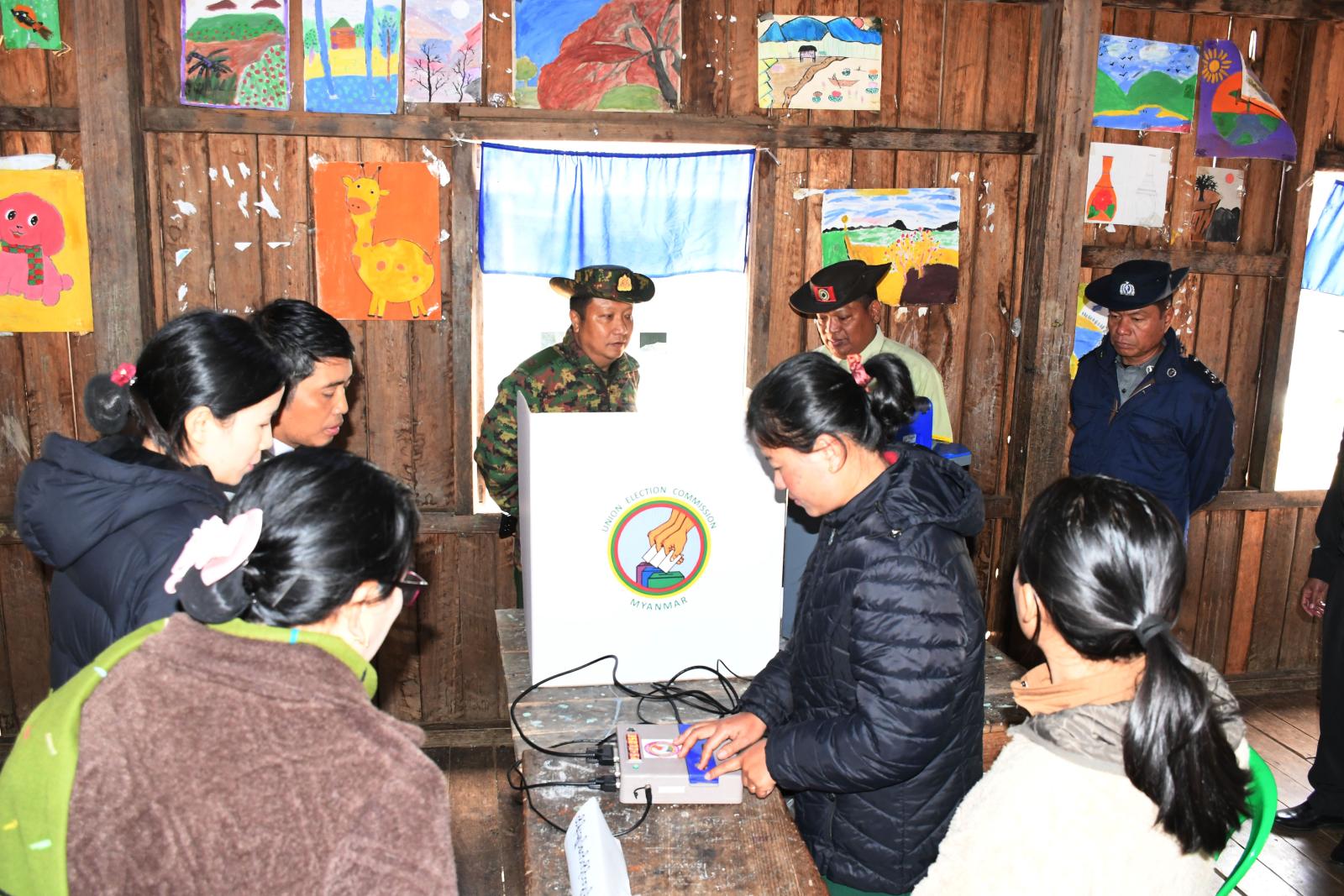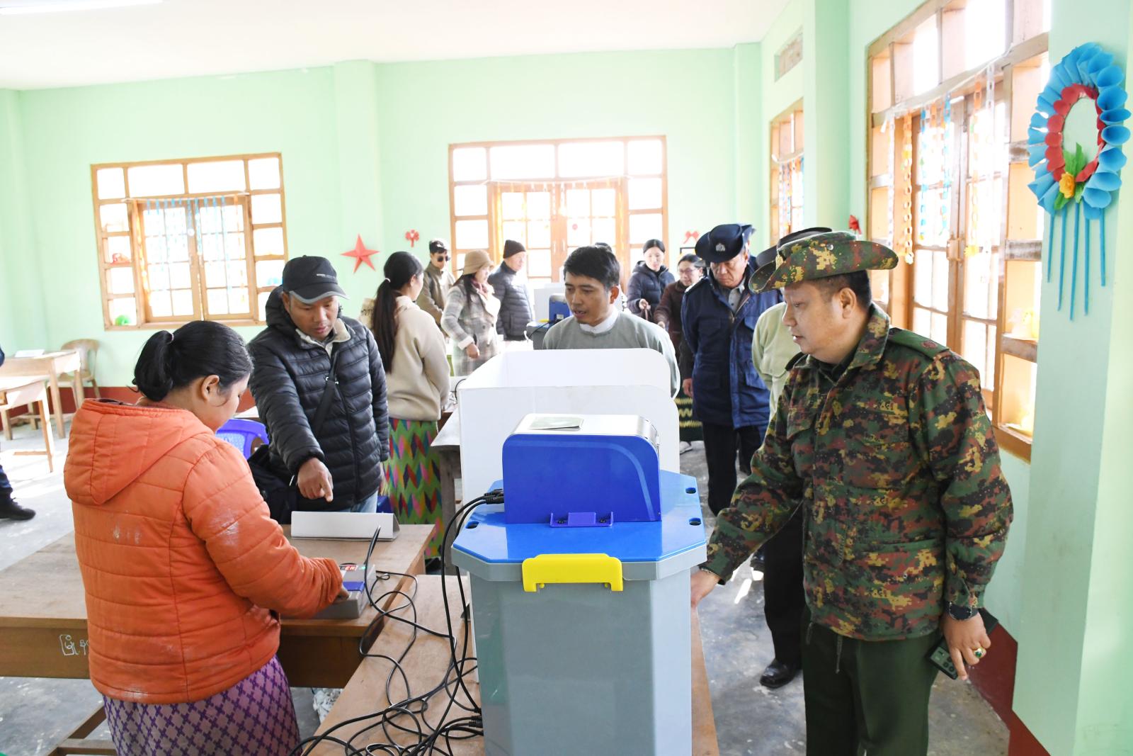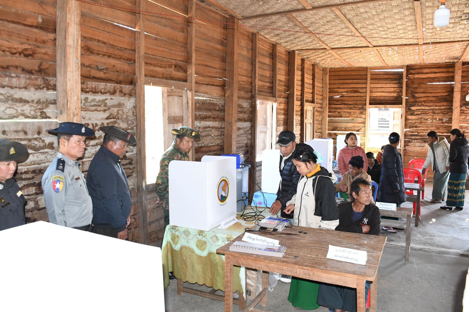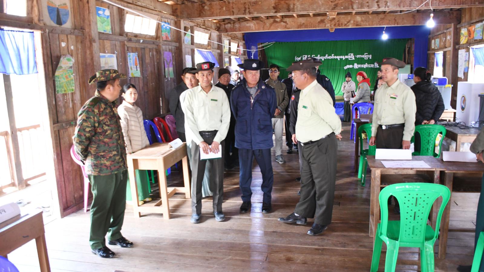 မြောက်ပိုင်းတိုင်းစစ်ဌာနချုပ် ဒုတိယတိုင်းမှူး ဗိုလ်မှူးချုပ် ရာဇာထွန်းသည် ခရိုင်စီမံခန့်ခွဲရေးနှင့်အုပ် ချုပ်ရေးကော်မတီ ဥက္ကဋ္ဌ ဦးစိုးထွန်းနှင့်အဖွဲ့ဝင်များ၊ ခရိုင်အဆင့်ဌာနဆိုင်ရာများနှင့်အတူ ဇန်နဝါရီ(၁၀)ရက် နံနက်ပိုင်းက ရွေးကောက်ပွဲအပိုင်း(၂)ကျင်းပမည့် မချမ်းဘောမြို့နယ်အတွင်းရှိ မဲရုံများတွင် မဲဆန္ဒရှင်ပြည်သူ များ အေးချမ်းစွာမဲပေးနိုင်ရေးအတွက် မဲရုံများခင်းကျင်းပြင်ဆင်ဆောင်ရွက်ထားရှိမှုများကိုကွင်းဆင်းစစ်ဆေး သည်။