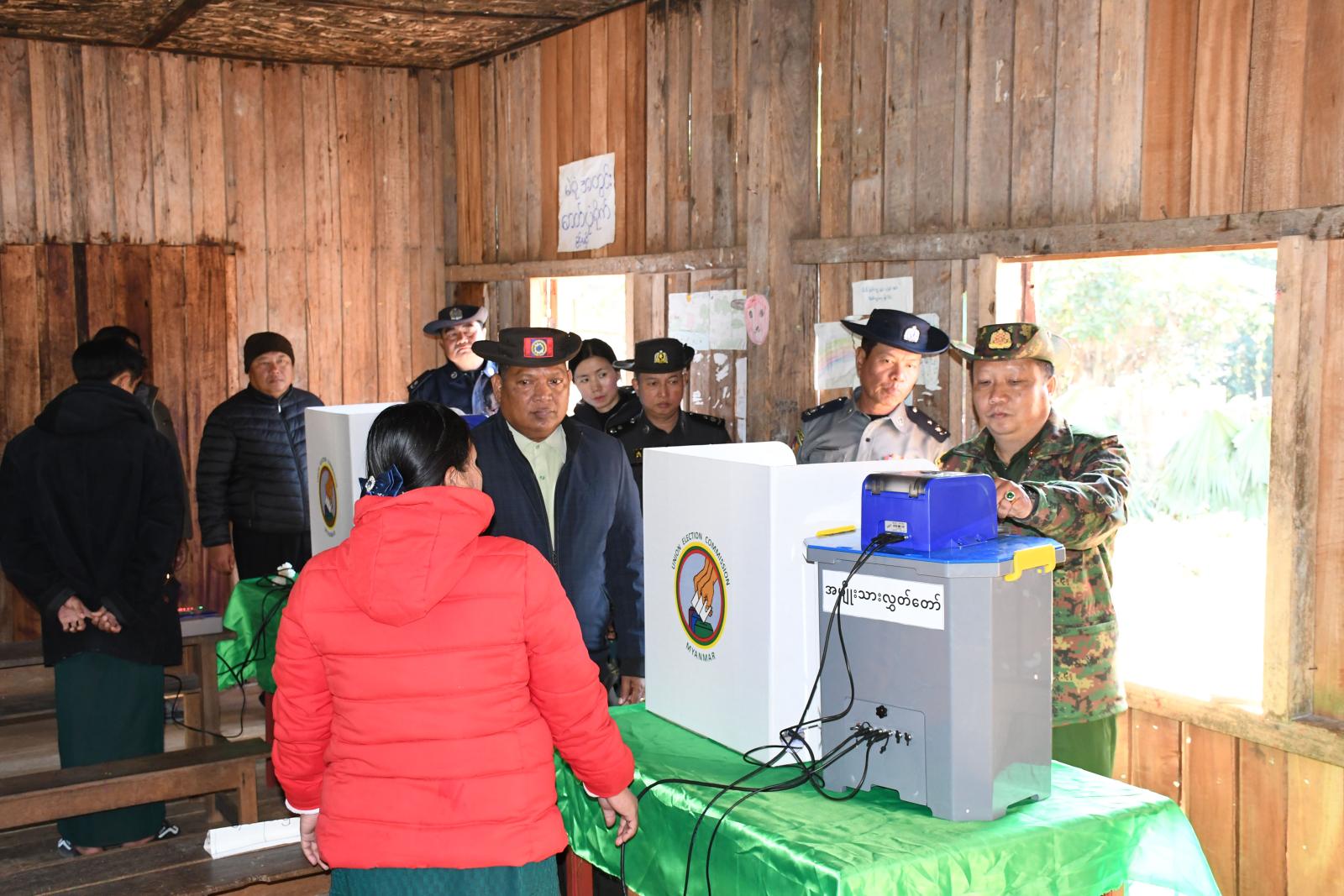 ဆက်လက်၍ ဒုတိယတိုင်းမှူးနှင့်အဖွဲ့ဝင်များသည် အမက(အင်ဘူးဘော့)ကျောင်း၌ အင်ဘူးဘော့ ကျေးရွာအုပ်စု မဲရုံအမှတ်(၁၁)၊ အထက(နမ်ခမ်)ကျောင်း၌ နမ်ခမ်ကျေးရွာအုပ်စု မဲရုံအမှတ်(၁)၊ အထက(ထရန်ဒမ်း)ကျောင်း၌ ထရန်ဒမ်းကျေးရွာအုပ်စု မဲရုံအမှတ်(၂)၊ အမက-လွန်(ငွါးဇာခါး)ကျောင်း၌ ကောင်းမှုလုံကျေးရွာအုပ်စု မဲရုံအမှတ်(၃)၊ အမက(မန်နို)ကျောင်း၌ မန်နိုကျေးရွာအုပ်စု မဲရုံအမှတ်(၄) မဲရုံများ တွင် လွတ်တော်အလိုက် ခင်းကျင်းထားရှိမှုများကိုကြည့်ရှုစစ်ဆေးပြီး ဒုတိယတိုင်းမှူးနှင့်အဖွဲ့ဝင်များက မဲရုံများအတွင်း လိုအပ်ချက်များကို သက်ဆိုင်ရာတာဝန်ရှိသူများနှင့်ပေါင်းစပ်ဆောင်ရွက်ပေးသည်။