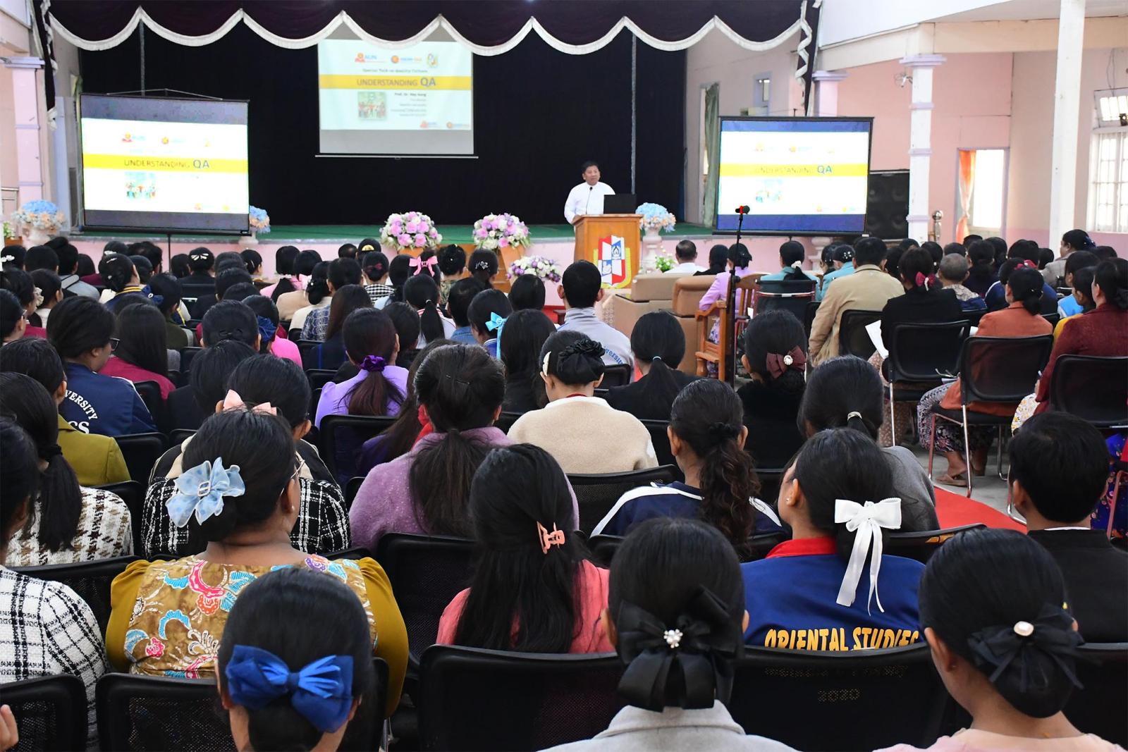 အဆိုပါ အရည်အသွေးအာမခံမှုစနစ်အကြောင်း မိတ်ဆက်ဟောပြောပွဲတွင် ဦးစွာ ပါမောက္ခချုပ်ဒေါက် တာဘဟန်က အဖွင့်အမှာစကားပြောကြားသည်။