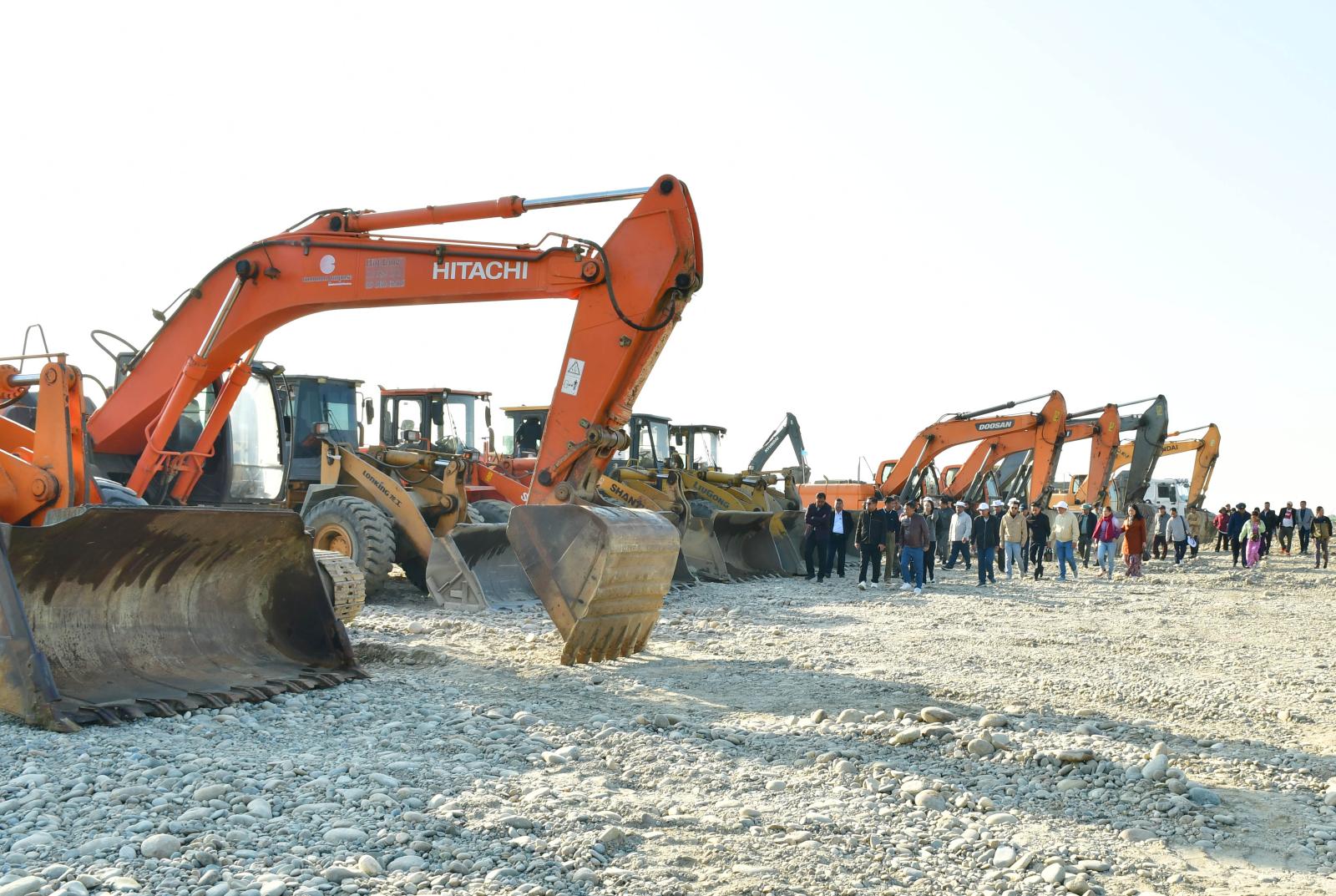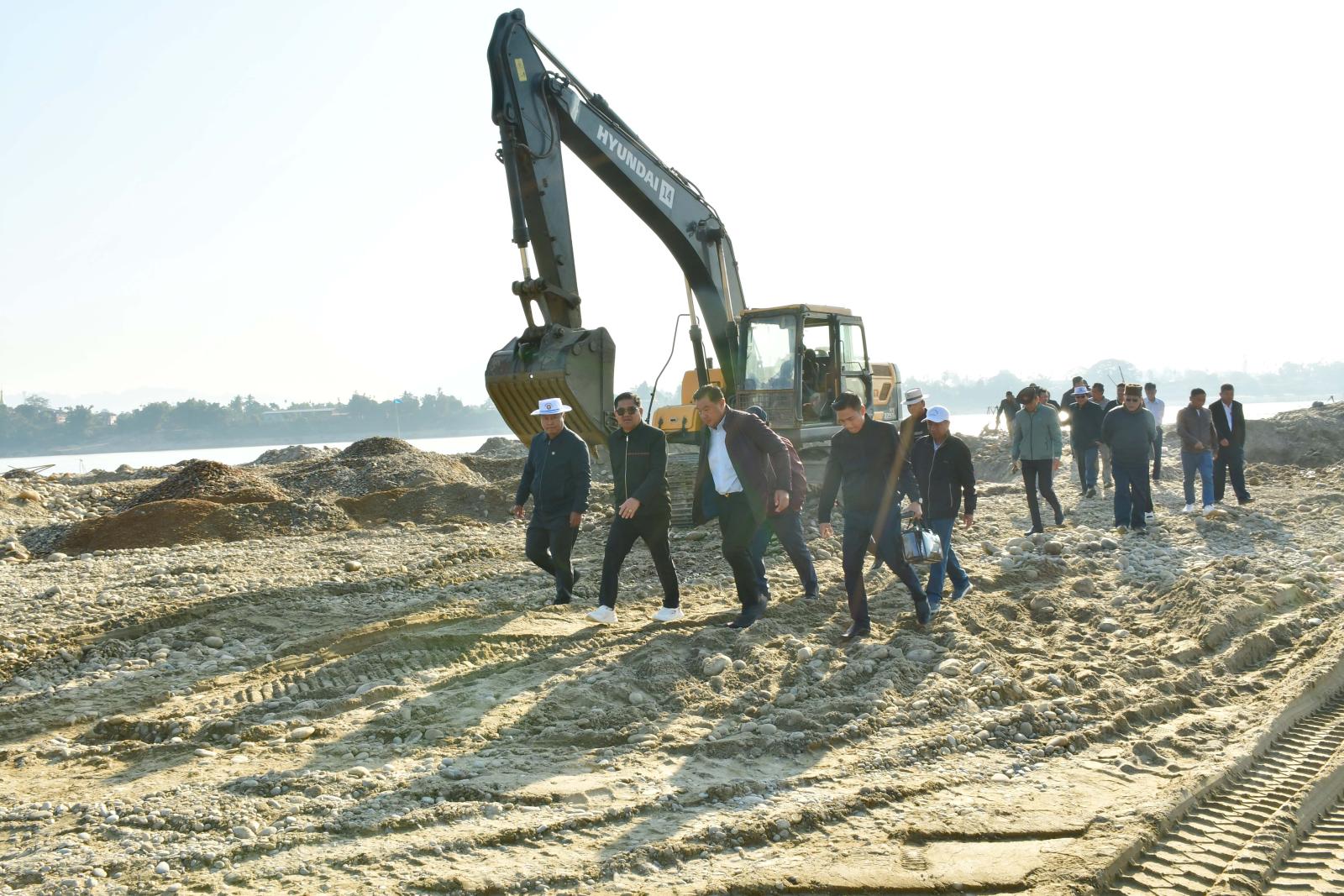 ယင်းနောက် ပြည်နယ်ဝန်ကြီးချုပ်၊ ပြည်နယ်အစိုးရအဖွဲ့ဝင် ဝန်ကြီးများနှင့် ဌာနဆိုင်ရာတာဝန်ရှိသူများသည် ဗလမင်းထင်တံတားအောက်ရှိ သဲသောင်ဖြစ်ထွန်းမှုများအား မြစ်ကြောင်းရှင်းလင်းရေးလုပ်ငန်း သောင်တူးဖော်ခြင်းလုပ်ငန်းအတွက် စက်ယန္တရားကြီးများဖြင့် ကြိုတင်ပြင်ဆောင် ရွက်နေမှုအခြေအနေများအား လှည့်လည်ကြည့်ရှုစစ်ဆေးခဲ့ကြပြီး ပြည်နယ်ဝန်ကြီးချုပ်က ရေအရင်း အမြစ်နှင့်မြစ်ချောင်းများဖွံ့ဖြိုးတိုးတက်ရေးဦးစီးဌာနက သတ်မှတ်ထားသည့် အလျား (၄၂၀၀)ပေ၊ အကျယ် (၁၃၅)ပေနှင့် အနက် ရေစစ်မျဉ်းအောက် (၂)မီတာ ပြည့်မီအောင် တူးဖော်ဆောင်ရွက်နိုင်ရေးအတွက် လိုအပ်သည်များကို သက်ဆိုင်ရာတာဝန်ရှိသူများနှင့် ပေါင်းစပ်ညှိနှိုင်း ဆောင်ရွက်ပေးခဲ့ သည်။