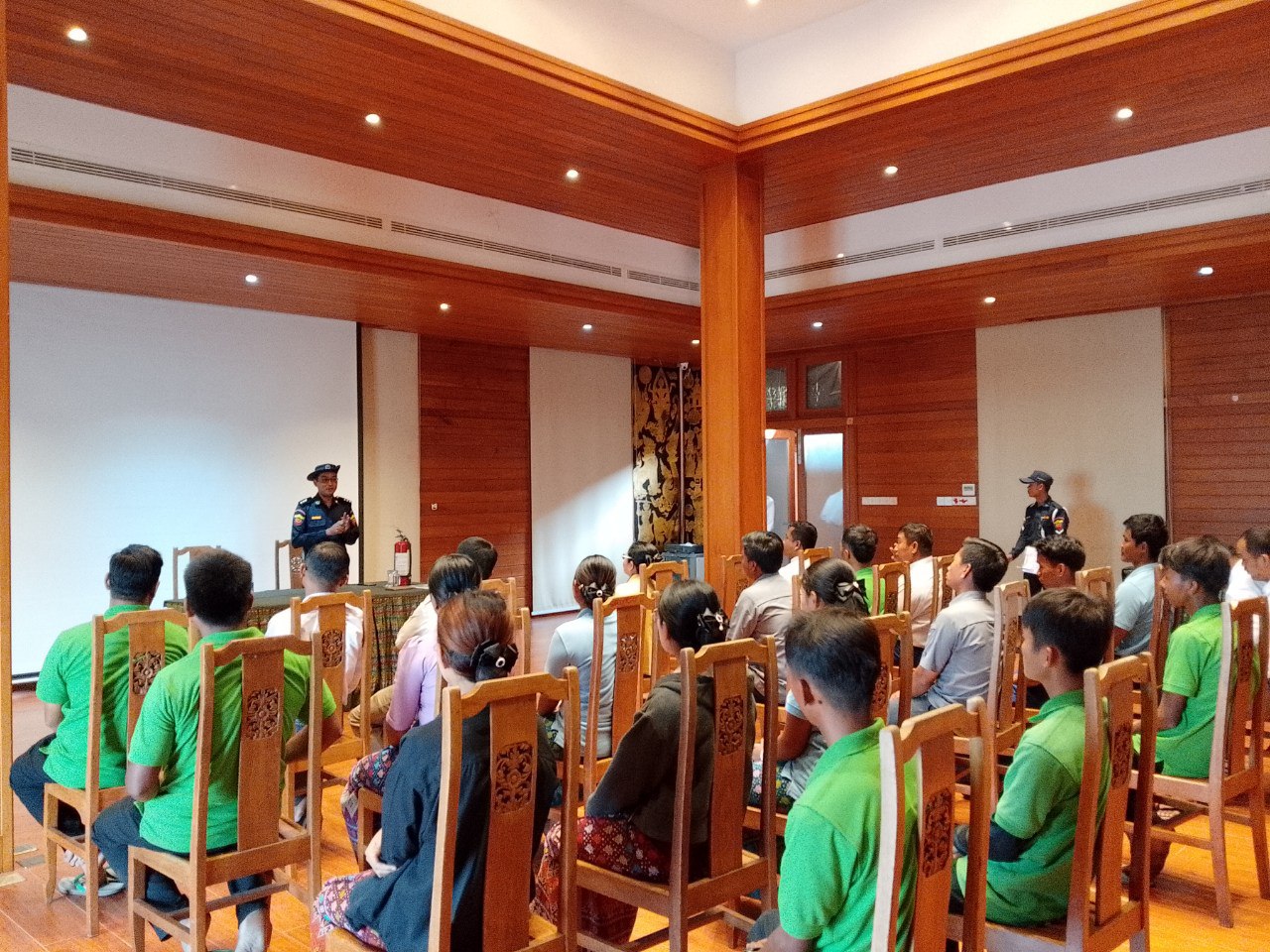 ပွင့်လင်းရာသီရောက်ရှိလာပြီဖြစ်သည်နှင့်အညီ မီးဘေးကြိုတင်ကာကွယ်ရေးလုပ်ငန်း များအား မန္တလေးတိုင်းဒေသကြီးမီးသတ်ဦးစီးဌာန ညွှန်ကြားရေးမှူး ဦးဇော်ဝင်းထွန်း၏ လမ်းညွှန်ချက် နှင့်အညီ အရှိန်အဟုန်မြှင့်တင် ဆောင်ရွက်လျှက်ရှိရာ ဇန်နဝါရီ ၁၇ ရက် နံနက် ၁၀ နာရီခွဲအချိန်က ညောင်ဦးမြို့နယ်၊ ပုဂံမြို့ဟောင်း၊တောင်ဘီကျေးရွာအတွင်းရှိ Thiri Pyitsaya Sakura ဟိုတယ်တွင် ဟိုတယ်ဝန်ထမ်း ၆၀ ဦးခန့်အား ဟိုတယ်တွင် မီးဘေးကြိုတင် ကာကွယ်ရေးကွင်းဆင်းဆောင်ရွက် အသိပညာပေးခြင်းနှင့်လက်တွေ့ ဇာတ်တိုက်လေ့ကျင့်ခြင်း ဆောင်ရွက်ပေးခဲ့ကြောင်းသိရသည်။