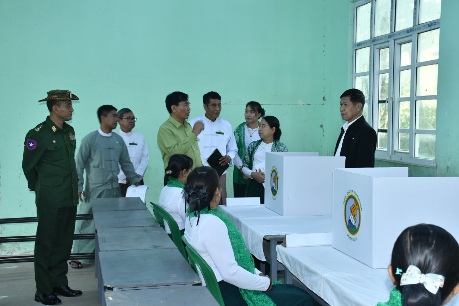 မန္တလေးတိုင်းဒေသကြီး အောင်မြေသာစံခရိုင် ပုသိမ်ကြီးမြို့နယ်၌ ပါတီစုံဒီမိုကရေစီအထွေထွေရွေးကောက်ပွဲအပိုင်း(၃) အောင်မြင်စွာကျင်းပနိုင်ရေးအတွက် ရပ်ကွက်/ကျေးရွာများရှိမဲရုံပြင်ဆင်ထားမှုအခြေအနေကို တိုင်းဒေသကြီးဝန်ကြီးချုပ်ဦးမျိုးအောင်နှင့် တိုင်းဒေသကြီးအဆင့်ဌာနဆိုင်ရာများ ဇန်နဝါရီ ၂၀ရက် နံနက်ပိုင်းက လှည့်လည်ကြည့်ရှုသည်။