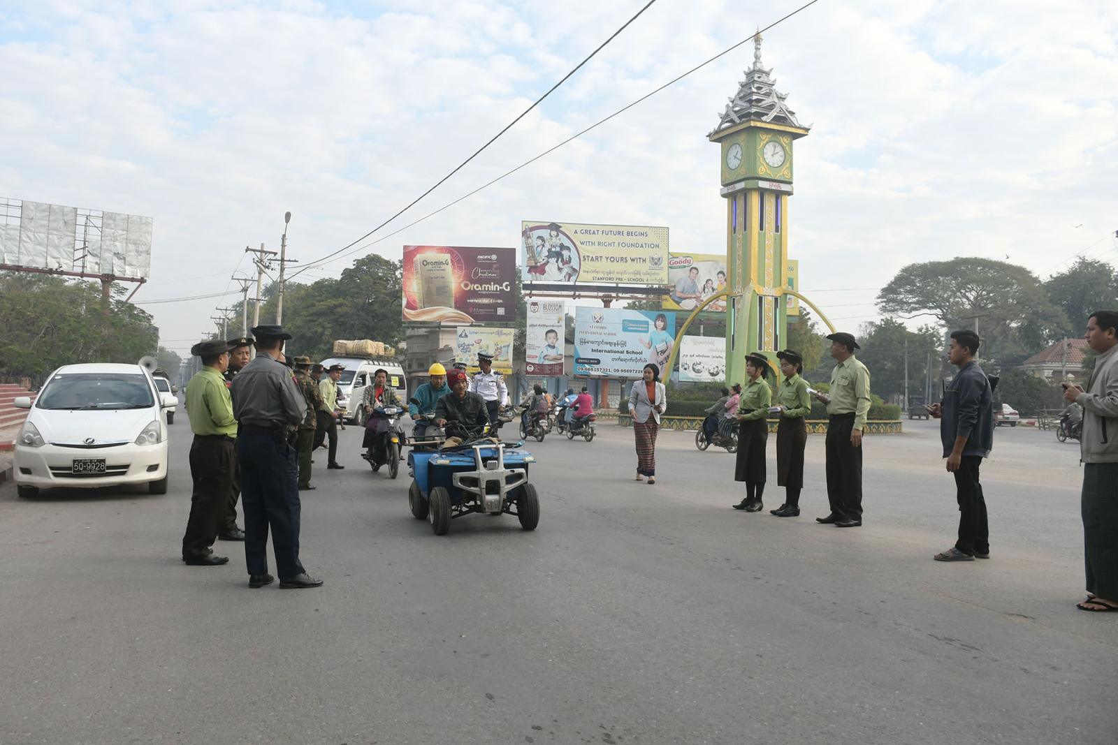 မြင်းခြံမြို့၌ ဇန်နဝါရီလ ၂၅ ရက်နေ့တွင် ကျင်းပမည့် ပါတီစုံဒီမိုကရေစီအထွေထွေရွေးကောက်ပွဲ အပိုင်း (၃) တွင် အသက် ၁၈ နှစ်နှင့်အထက် မဲပေးပိုင်ခွင့်ရှိသည့် နိုင်ငံသားတိုင်း နိုင်ငံသားအခွင့်အရေး မဆုံးရှုံးစေရန် ဆန္ဒမဲပေးနိုင်ရေးအတွက် “ဒို့အတူမဲပေးကြမယ်” လက်ကမ်းစာစောင်များကို လမ်းသွားလမ်းလာဖြတ်သန်းသွားလာကြသည့် ဒေသခံပြည်သူများနှင့် ခရီးသွားပြည်သူများထံသို့ ခရိုင်စီမံခန့်ခွဲရေးနှင့်အုပ်ချုပ်ရေးကော်မတီဥက္ကဋ္ဌ ဦးမင်းမင်းထွန်းနှင့်အဖွဲ့ဝင်များ၊ မြို့နယ်စီမံခန့်ခွဲရေးနှင့်အုပ်ချုပ်ရေးကော်မတီဥက္ကဋ္ဌ ဦးစိုးထွဋ်နှင့်အဖွဲ့ဝင်များ၊ ခရိုင်ပြန်ကြားရေးနှင့်ပြည်သူ့ဆက်ဆံရေးဦးစီးဌာန ဦးစီးအရာရှိ ဦးထိန်လင်းနှင့်ဝန်ထမ်းများ၊ မြို့နယ် မီးသတ်တပ်ဖွဲ့ဝင်များက ဖြန့်ဝေပေးခဲ့သည်။