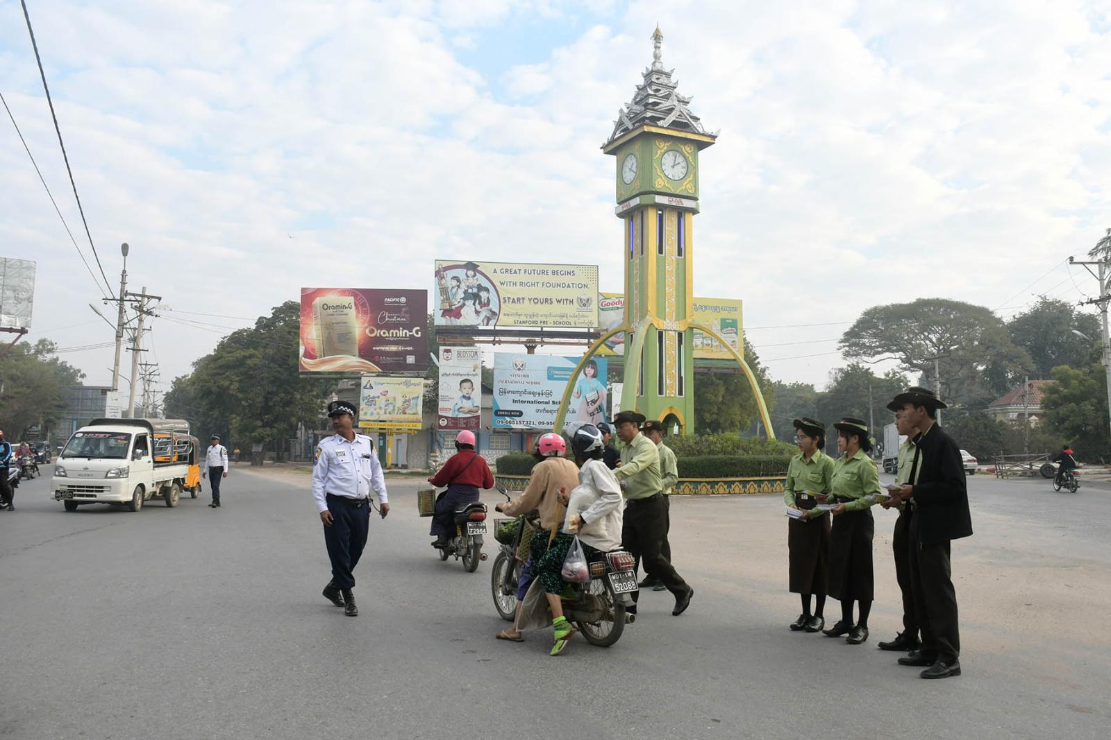 အဆိုပါလက်ကမ်းစာစောင်များကို လူစည်ကားရာနေရာများဖြစ်သည့် မြို့လယ်ခေါင် နာရီစင်၊ အမှတ် (၂)ရပ်ကွက် လမ်းဆုံ၊ ပြောင်းပြာတံတားလမ်းဆုံ၊ အဝေးပြေးကားကွင်းလမ်းဆုံ၊ မြင်းခြံ-ညောင်ဦး လမ်းဆုံ၊ မော်မော်လမ်းဆုံနှင့် စည်ပင်သာယာဈေးကြီးတို့တွင် အစောင်ရေ ၃၀၀၀ ဖြန့်ဝေပေးခဲ့ကြောင်း သိရသည်။
