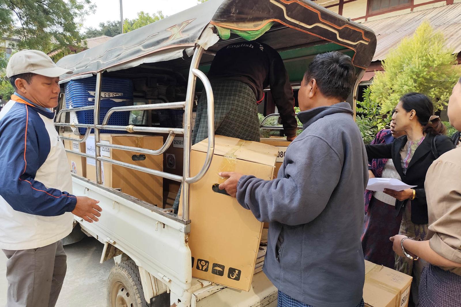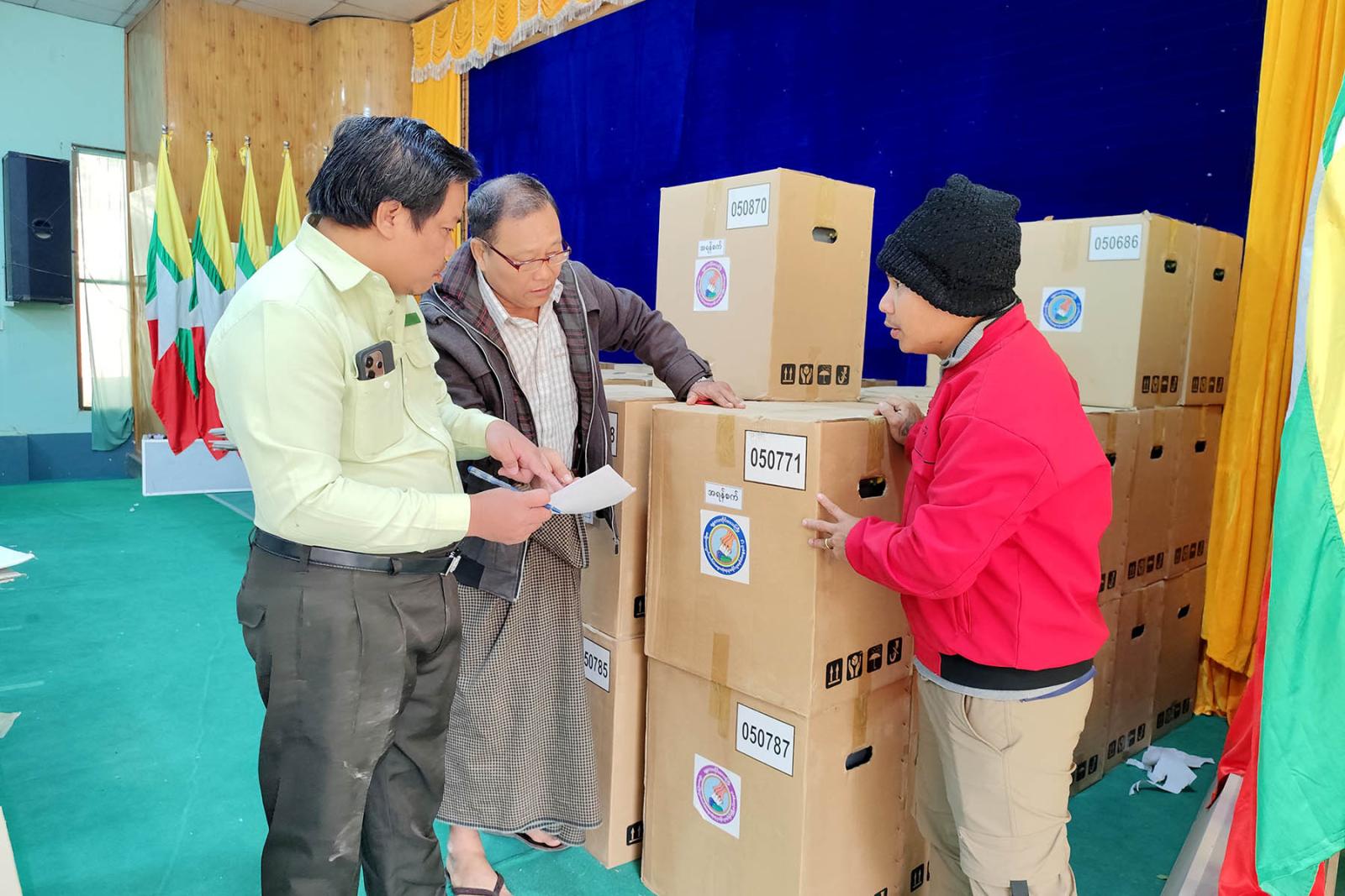 အဆိုပါမြန်မာအီလက်ထရောနစ်မဲပေးစက်နှင့် မဲရုံသုံးပစ္စည်းများ ထုတ်ယူရာတွင် စနစ်တကျဖြစ်စေရေးနှင့် အမှားအယွင်းများမဖြစ်ပေါ်စေရေန်အတွက် မြို့နယ်စီမံခန့်ခွဲရေးနှင့်အုပ်ချုပ်ရေးကော်မတီဥက္ကဋ္ဌ ဦးစိုးထွဋ်နှင့် တာဝန်ရှိသူအဆင့်ဆင့်က အနီးကပ်ကြီးကြပ်၍ သက်ဆိုင် ရာမဲရုံများအား ဇုံနယ်မြေများခွဲ၍ သက်ဆိုင်ရာတာဝန်ရှိသူများထံ ထုတ်ပေးလျက်ရှိသည်။