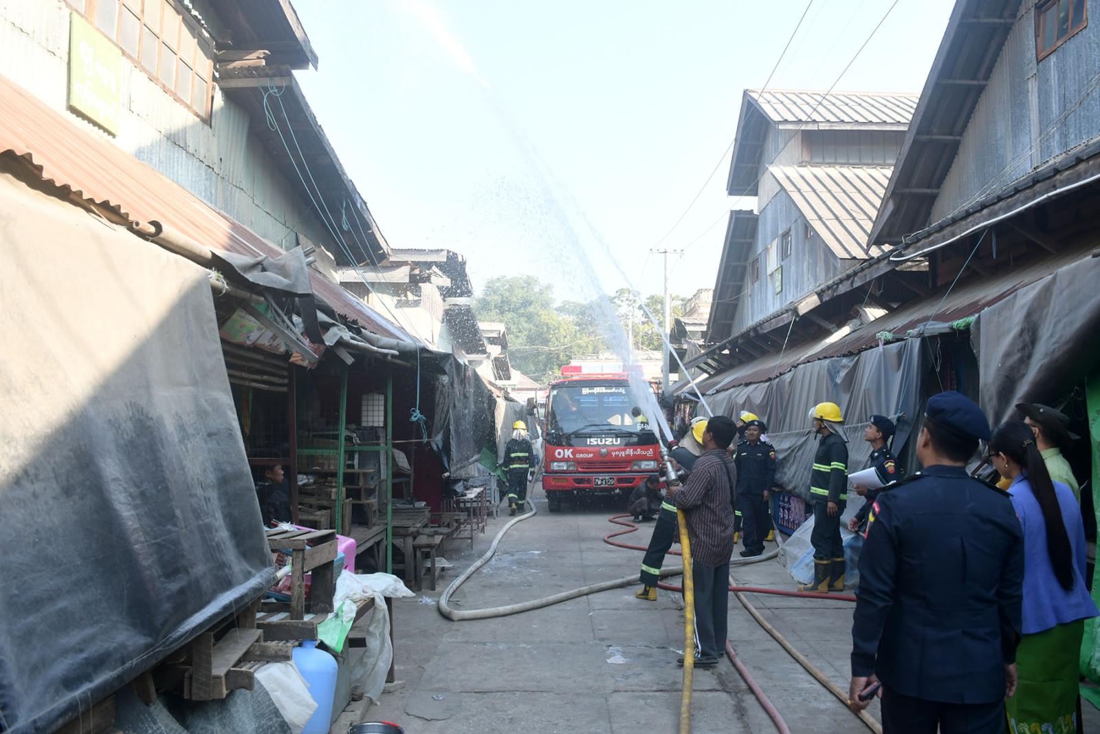 အဆိုပါ မီးဘေးအန္တရာယ်ကြိုတင်ကာကွယ်ရေး လက်တွေ့သရုပ်ပြသခြင်းနှင့် အသိပညာပေးဟောပြောခြင်းကို မြို့နယ်မီးသတ်ဦးစီးမှူး ဦးအောင်ကိုသန့်က ခရိုင်မီးသတ်ဦးစီးဌာနရဲ့ လမ်းညွှန်ချက်များနှင့်အညီ စည်ပင်သာယာဈေးအတွင်းရှိ ဈေးဆိုင်ခန်းများ မီးဘေးအန္တရာယ် ကြိုတင် ကာကွယ်ရေးအတွက် ဆောင်ရန်/ဆောင်ရန်များ စာတွေ့/လက်တွေ့ပါ ရှင်းလင်းပြောကြားခဲ့ပြီး မီးသတ်ဆေးဘူးဖြင့် မီးငြိမ်းသတ်နည်းကို ရှင်းလင်းပြသပေးပြီး တက်ရောက်လာသော ဈေးသူ၊ ဈေးသားများအား လက်တွေ့သရုပ်ပြ ငြိမ်းသတ်စေခဲ့သည်