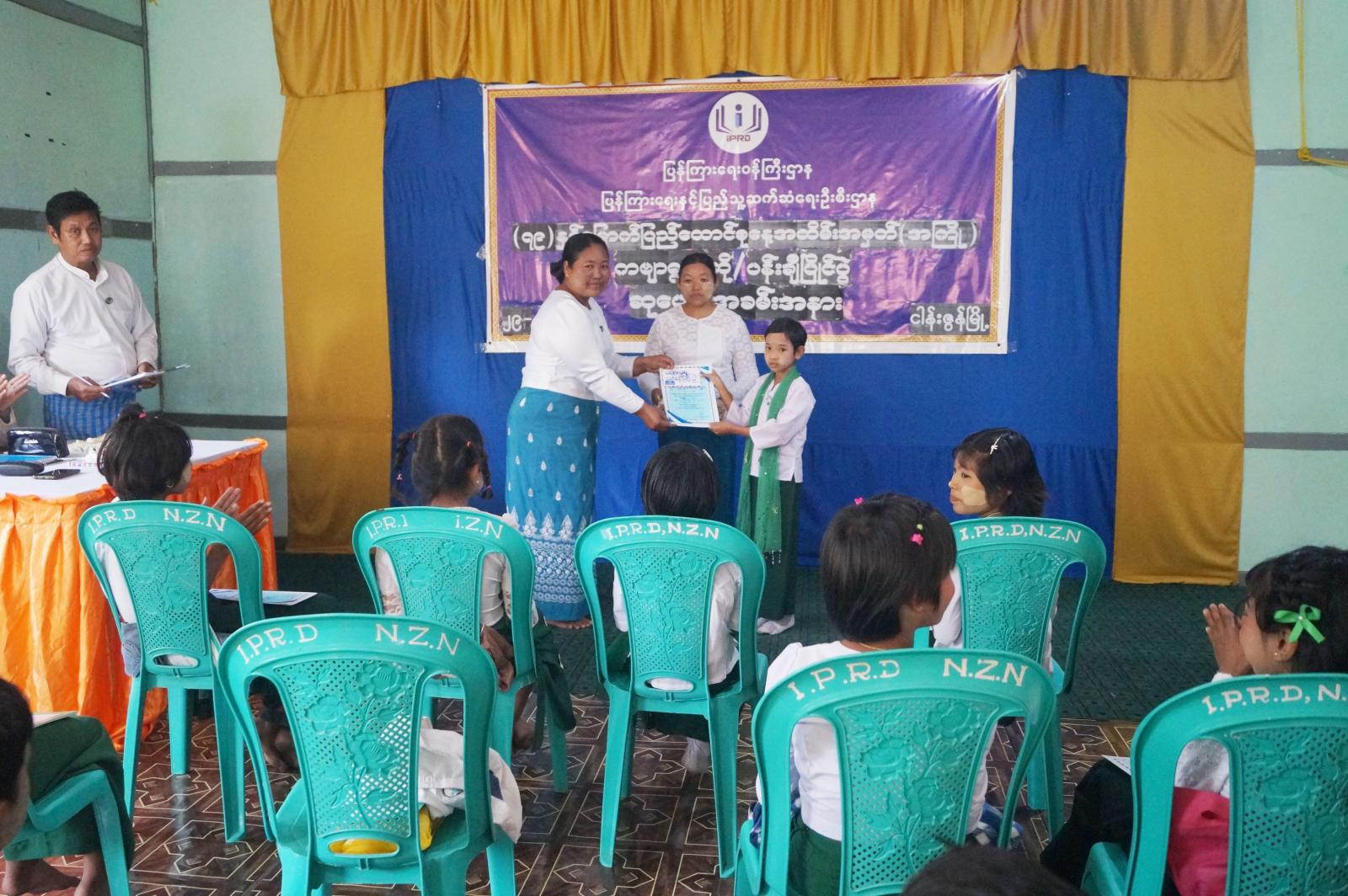 ထို့နောက် လူထုအခြေပြုဗဟိုဌာန (Community Centre)ခန်းမ၌ ကဗျာရွတ်ဆိုပြိုင်ပွဲနှင့် ပန်းချီပြိုင်ပွဲသို့ ကျောင်းသား၊ ကျောင်းသူများက ပါဝင်ယှဉ်ပြိုင်ကြပြီး ပြိုင်ပွဲများအပြီးတွင် ဆုရကျောင်းသား၊ ကျောင်းသူများအား မြို့နယ်စီမံကိန်းရေးဆွဲရေးဦးစီးဌာန လက်ထောက်ညွှန်ကြားရေးမှူး ဒေါ်ချိုချိုအောင်၊ ပြန်ကြားရေးနှင့်ပြည်သူ့ဆက်ဆံရေးဦးစီးဌာနဦးစီးအရာရှိ ဒေါ်နေခြည်ဦးနှင့် အမှတ်(၁၊ ၂၊ ၃၊ ၄) အခြေခံ ပညာမူလတန်းကျောင်းများမှ ကျောင်းအုပ်ဆရာမများက ဆုများ အသီးသီးချီးမြှင့်ပေးအပ်ခဲ့ကြောင်း သိရသည်။