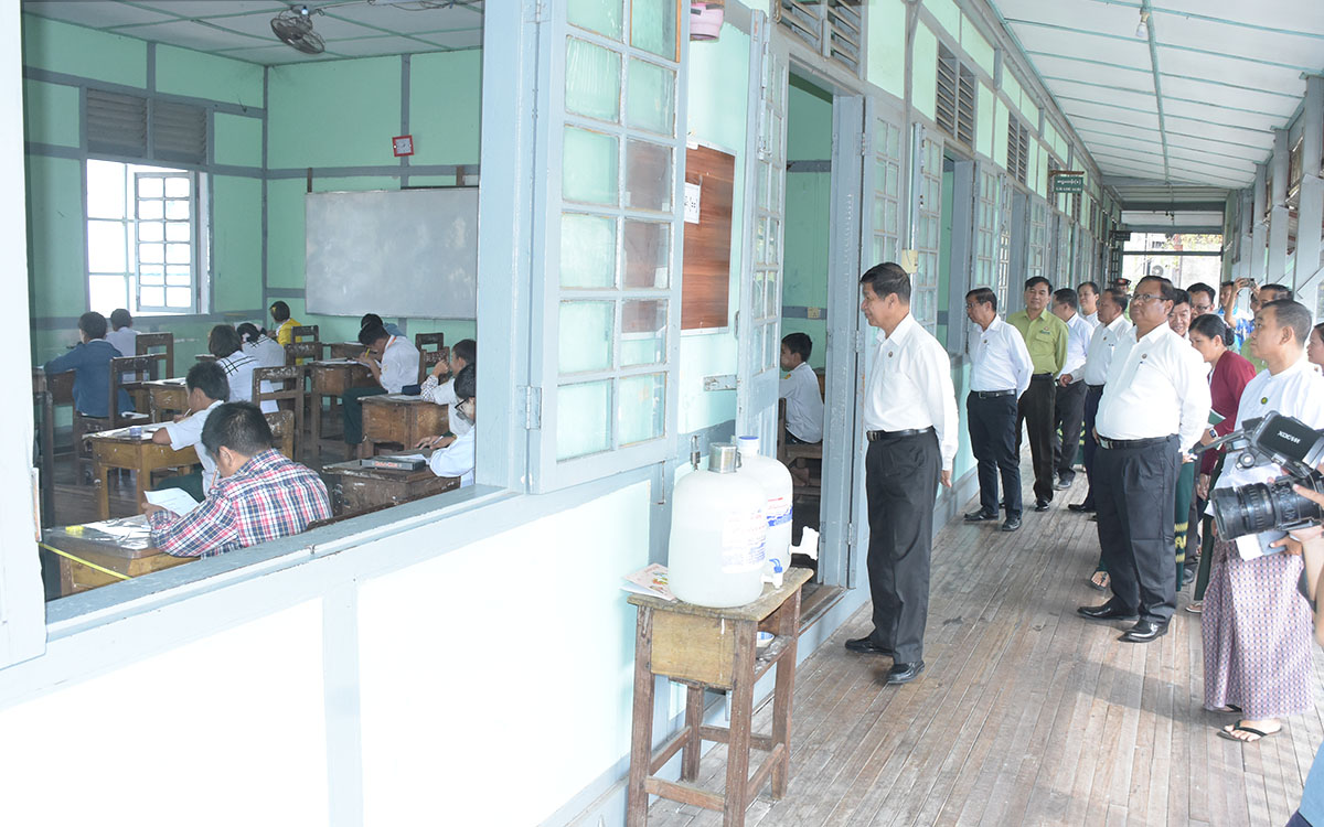 ထိုသို့ကြည့်ရှုရာတွင် အောင်မြေသာစံခရိုင် အောင်မြေသာစံမြို့နယ်ရှိ အမှတ် (၈) အခြေခံပညာအထက် တန်းကျောင်း၊ မဟာအောင်မြေခရိုင် ချမ်းအေးသာစံမြို့နယ်ရှိ အမှတ် (၁၄) အခြေခံပညာအထက်တန်းကျောင်းနှင့် အမှတ် (၁၆) အခြေခံပညာအထက်တန်းကျောင်းများသို့ ရောက်ရှိပြီး အတန်းအလိုက် ကျောင်းသား၊ ကျောင်းသူများ အေးချမ်းစွာဖြင့် စာဖြေဆိုနေမှုများကို လိုက်လံကြည့်ရှုကာ တာဝန်ရှိသူများက တိုင်းဒေသကြီးအတွင်း စာမေးပွဲဖြေဆိုမှု ကျောင်းသား၊ ကျောင်းသူဦးရေ၊ စာမေးပွဲစည်းမျဉ်းစည်းကမ်းများနှင့်အညီ စာမေးပွဲကျင်းပနေမှုတို့ကို ရှင်းလင်းတင်ပြရာ တိုင်းဒေသကြီးဝန်ကြီးချုပ်က ကျောင်းသား၊ ကျောင်းသူများ စိတ်ချမ်းမြေ့စွာဖြင့် စာမေးပွဲပြီးဆုံးသည်အထိ ဖြေဆိုသွားရေး၊ စာမေးပွဲ စည်းမျဉ်းစည်းကမ်း ညွှန်ကြားချက်များအတိုင်း အလေးထားကာ စနစ်တကျကြပ်မတ်ဆောင်ရွက်သွား ရေးတို့ကိုမှာကြားပြီး လိုအပ်သည်များကို ပေါင်းစပ်ညှိနှိုင်း ဖြည့်ဆည်း ဆောင်ရွက်ပေးခဲ့သည်။