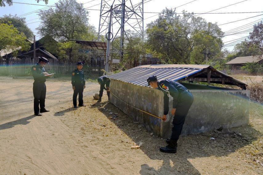 ကွင်းဆင်းစစ်ဆေးဆောင်ရွက်ရာတွင် မြို့နယ်မီးသတ်ဦးစီးမှူး ဦးထွန်းထွန်းဝင်းနှင့် သန္ဓေမီးသတ်တပ်ဖွဲ့ဝင်များ၊ အရန်မီးသတ်တပ်ဖွဲ့ဝင်များက မီးသတ်ရေလှောင်ကန်များ၏ အကျယ်အဝန်း၊ ရေသိုလှောင်ဝင်ဆံ့နိုင်သည့် ပမာဏတို့ကို တိုင်းတာခြင်းများ ဆောင်ရွက်ပြီး ရေဖြည့်တင်းရန် လိုအပ်သည့်ကန်များကို ရေဖြည့်တင်းနိုင်ရန် ဆောင်ရွက်လျက်ရှိကြောင်းသိရသည်။ မြို့ပေါ်ရပ်ကွက်များ၌ စုစုပေါင်းရေဂါလံ ၃၁၉၀၀ ဆံ့ မြေပေါ်အုတ်ရေလှောင် ကန် ၈ ခု၊ စုစုပေါင်းရေဂါလံ ၁၆၅၀၀ ဆံ့ ရေစင် ၂ ခုနှင့် စုစုပေါင်းရေဂါလံ ၃၂၃၇၅၀ ဆံ့ မြေအောက်အုတ်ရေကန် ၅ ခုတို့ရှိကြောင်း သိရသည်။