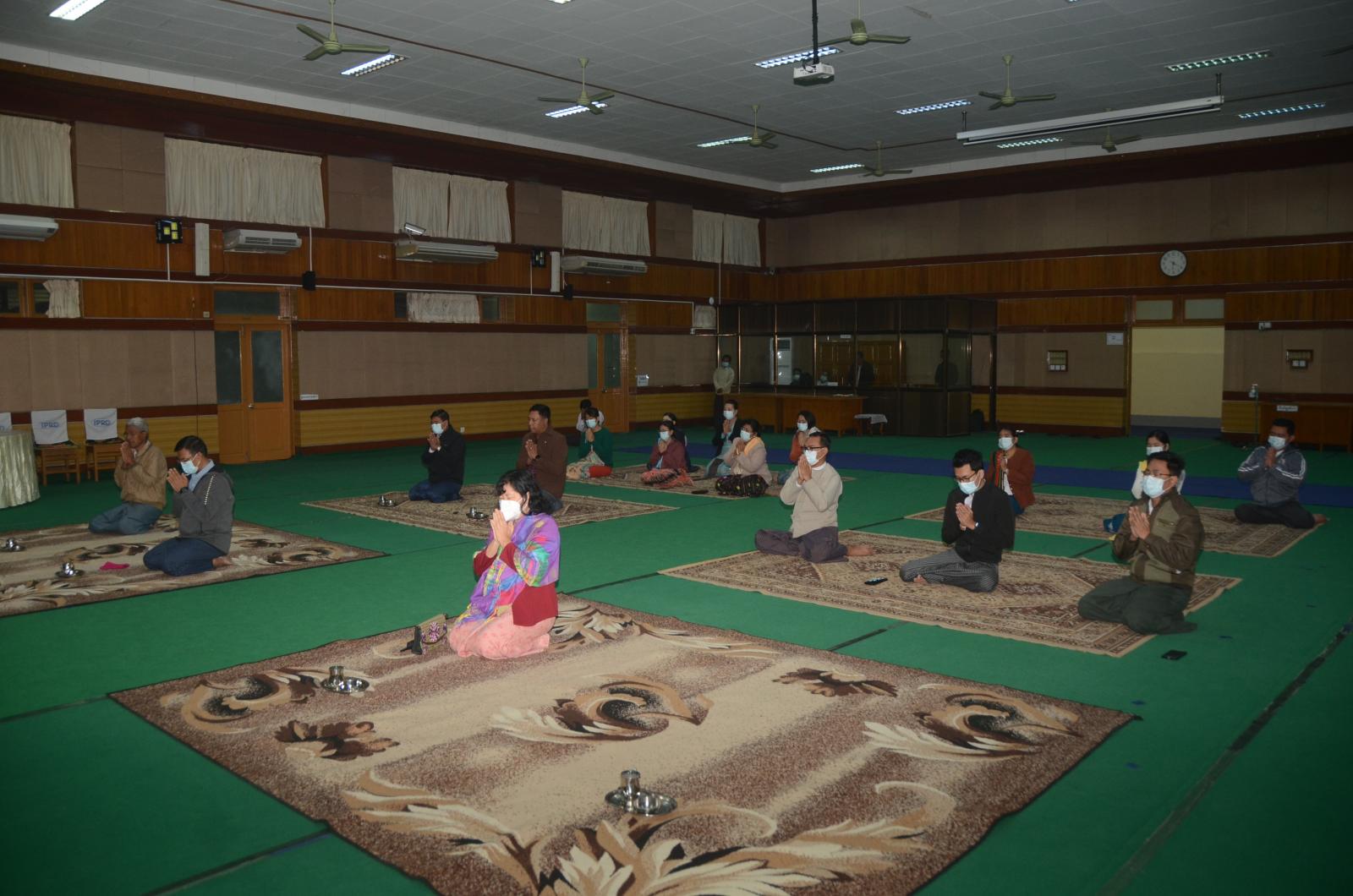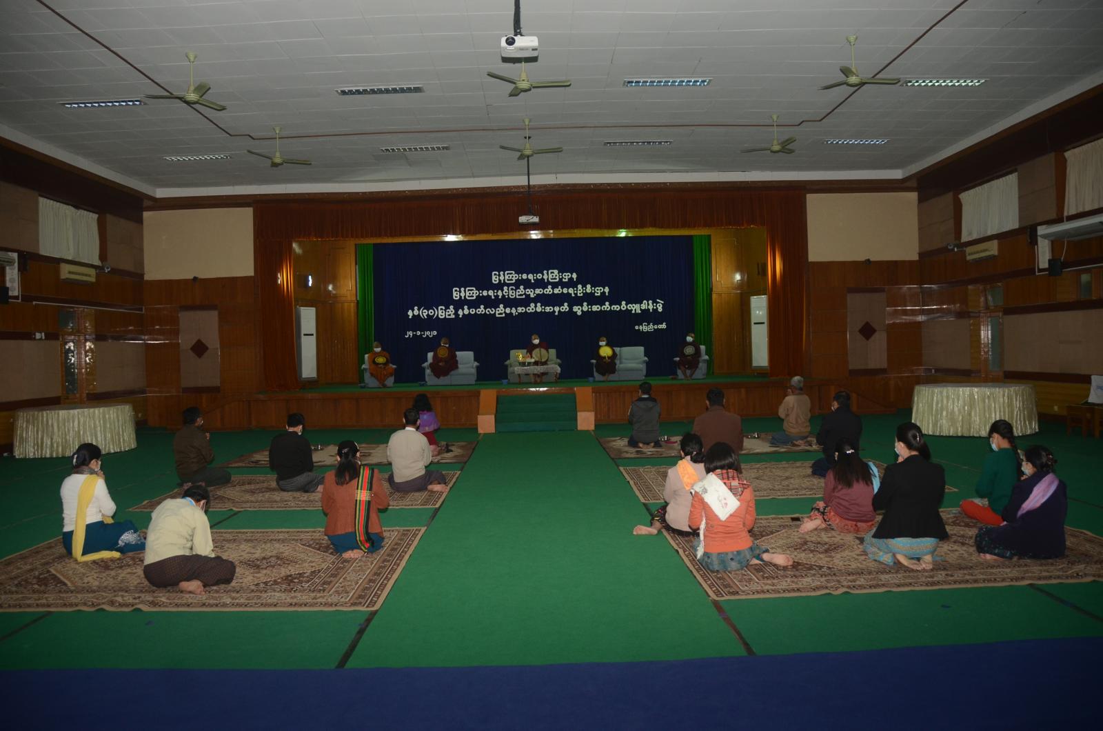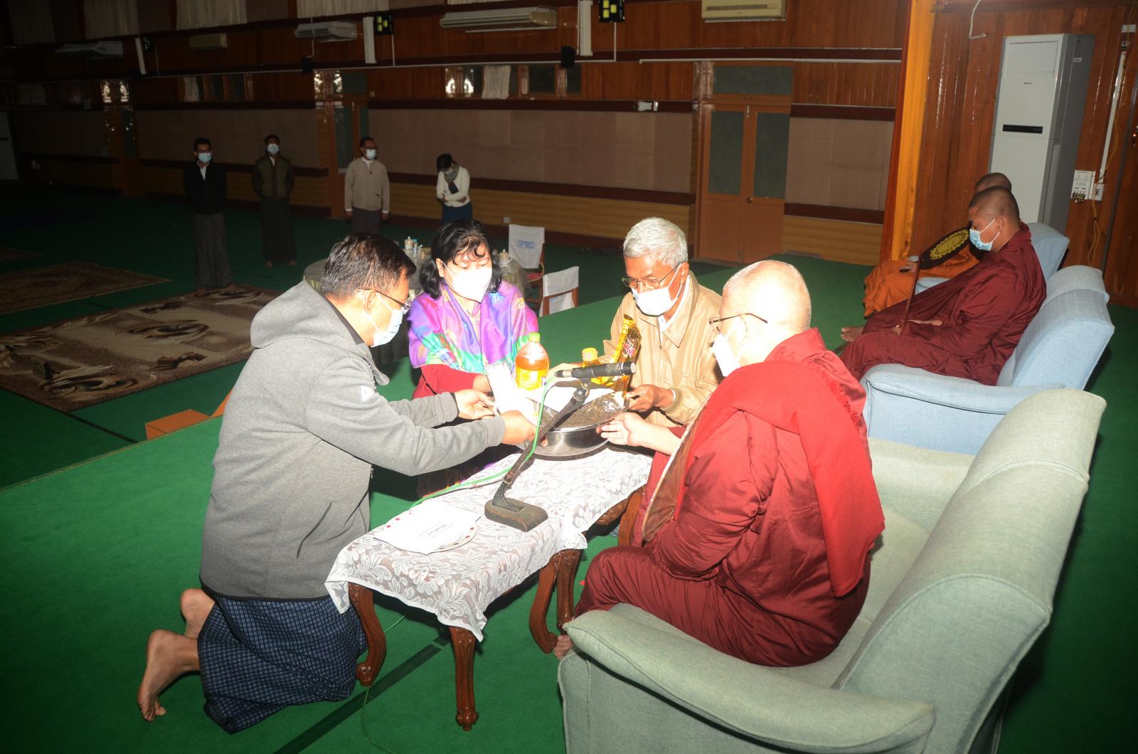 အခမ်းအနားတွင် ပျဉ်းမနားမြို့ ရတနာသိဒ္ဓိကျောင်းတိုက် ပဓာန နာယက ဆရာတော် ဘဒ္ဒန္တကုသလ အရှင်သူမြတ်နှင့် သံဃာတော်အရှင်သူမြတ်များက မေတ္တာသုတ် ပရိတ်တရားတော်များရွတ်ဖတ်ကြပြီး တက်ရောက်လာကြသော ညွှန်ကြားရေးမှူးချုပ်(ငြိမ်း) ဦးရဲတင့်၊ ပြန်ကြားရေးနှင့်ပြည်သူ့ဆက်ဆံရေး ဦးစီးဌာန၊ ညွှန်ကြားရေးမှူးချုပ် ဦးအေးကြွယ်၊ ဒုတိယညွှန်ကြားရေးမှူးချုပ် ဒေါက်တာ ဒေါ်သီတာတင်နှင့် ဌာနခွဲများမှ ညွှန်ကြားရေးမှူးများ၊ အရာထမ်း၊ အမှုထမ်း ဝန်ထမ်းများက ဆရာတော် သံဃာတော် အရှင်သူမြတ်များထံမှ ငါးပါးသီလ ခံယူဆောက်တည်ကြသည်။