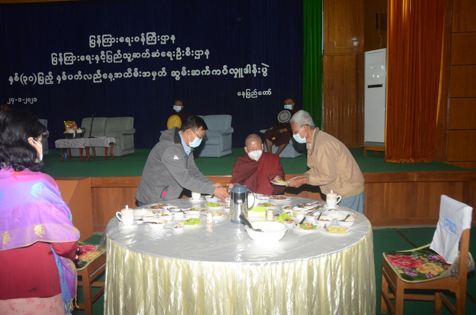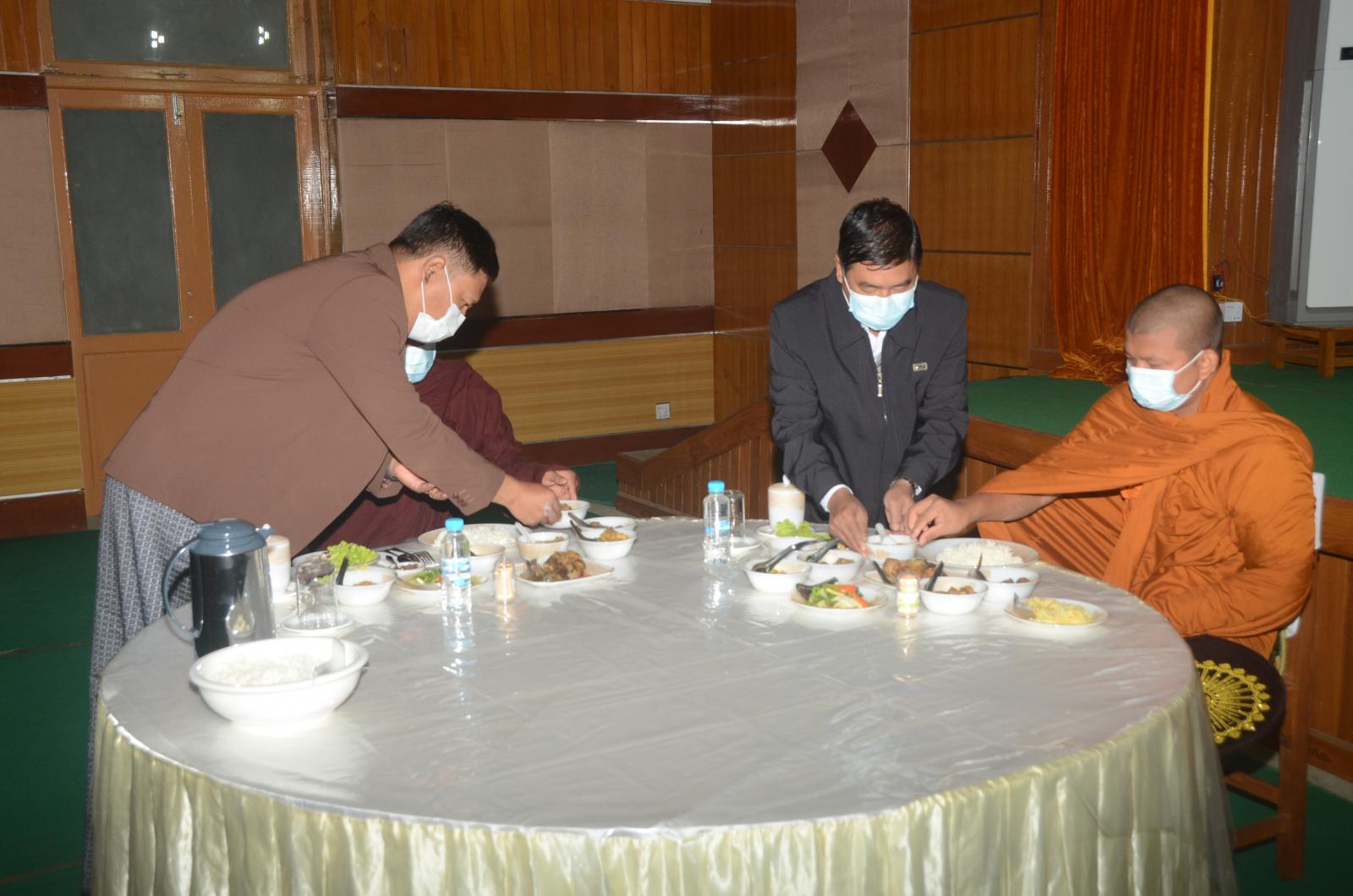 အခမ်းအနားအပြီးတွင် ညွှန်ကြားရေးမှူးချုပ်နှင့် အရာထမ်း၊ အမှုထမ်း ဝန်ထမ်းများက ဆရာတော်၊ သံဃာတော် အရှင်သူမြတ်များအား အာရုဏ်ဆွမ်း ဆက်ကပ်လှူဒါန်းခဲ့ကြကြောင်း သိရသည်။