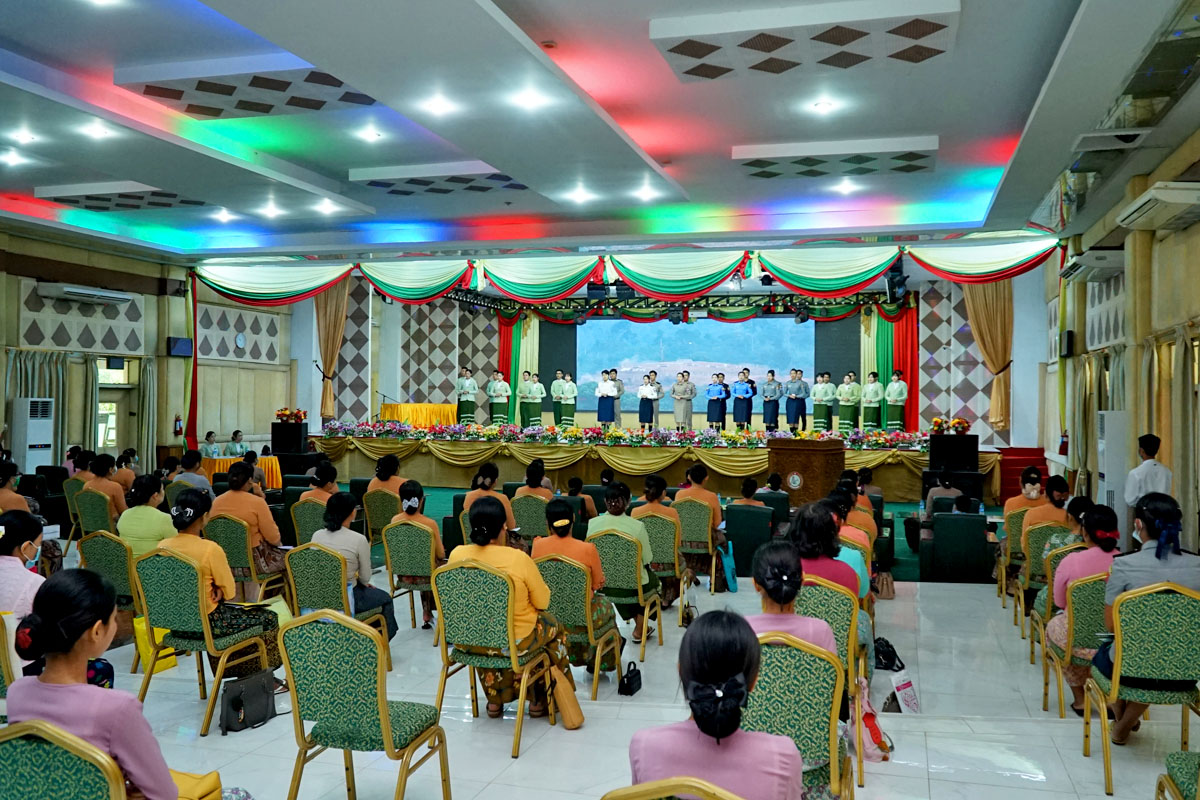 ရှေးဦးစွာ မကွေးတိုင်းဒေသကြီးအတွင်းရှိ ပြည်ထဲရေးဝန်ကြီးဌာနအောက်မှာရှိသည့် တပ်ရင်း/ တပ်ဖွဲ့နှင့်ဦးစီးဌာနများမှ ဝန်ထမ်းများက (ဇာတိမာန်) တေးသီချင်းဖြင့် သီဆိုဖျော်ဖြေခဲ့ကြပြီး တိုင်းဒေသကြီးစီမံအုပ်ချုပ်ရေးကောင်စီ ဥက္ကဋ္ဌ ဦးတင့်လွင်၏ ဇနီးဒေါ်ဝင်းဝင်းမြင့်က မိသားစုစည်းရုံး ရေးနှင့် စည်းကမ်းထိန်းသိမ်းရေးကော်မတီ၏ လုပ်ငန်းတာဝန်များဖြစ်သည့် စည်းရုံးရေး၊ ပညာရည်မြင့် တင်ရေး၊ ကျန်းမာရေး၊ လူမှုရေး၊ လုံခြုံရေး၊ စည်းကမ်းထိန်းသိမ်းရေးလုပ်ငန်းများကို ဆောင်ရွက်ရမှာ ဖြစ်ကြောင်း၊ အဆိုပါလုပ်ငန်းများသည် ခရိုင်/မြို့နယ် ဖွံ့ဖြိုးတိုးတက်ရေးအတွက် အခြေခံကျတဲ့လုပ်ငန်း များဖြစ်ကြောင်း၊ ခရိုင်/မြို့နယ် မိသားစုစည်းရုံးရေးနှင့် စည်းကမ်းထိန်းသိမ်းရေးကော်မတီ ဥက္ကဋ္ဌများ အနေဖြင့် မိမိတို့လက်အောက်ရှိ ဝန်ထမ်းများနဲ့ ဝန်ထမ်းမိသားစုဝင်များကို နိုင်ငံတော်စီမံအုပ်ချုပ်ရေး ကောင်စီမှ ဆောင်ရွက်လျက်ရှိတဲ့ ရှေးလုပ်ငန်းစဉ်(၅)ရပ်ကို ကျယ်ကျယ်ပြန့်ပြန့် နားလည်သဘော ပေါက် သိရှိနိုင်စေရေး ချပြရှင်းလင်းဆောင်ရွက် သွားကြရန်လိုအပ်ကြောင်း အမှာစကား ပြောကြားခဲ့ သည်။