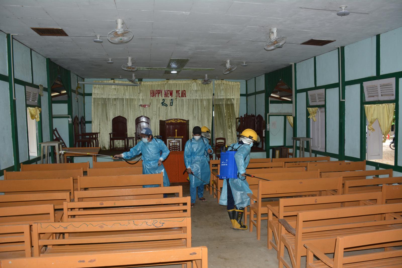 ယင်းသို့ ဆောင်ရွက်ရာတွင် မြို့ပေါ်ရပ်ကွက်များရှိ ကိုဗစ်-၁၉ ရောဂါပိုးတွေ့ လူနာနေအိမ်နှင့် အနီးပတ်ဝန်းကျင်များအား ပိုးသတ်ဆေးဖျန်းပေးခြင်း ၊ ဘာသာရေးကျောင်းများအားဆေးဖျန်းခြင်း များဆောင်ရွက်ခဲ့ပြီး ပြည်သူများအနေဖြင့် ကိုဗစ်-၁၉ ရောဂါ ကူးစက်ပျံ့ပွားမှုကို အမြန်ကာကွယ် တားဆီးထိန်းချုပ်နိုင်ရေးအတွက် ရောဂါကာကွယ်ရေးလုပ်ငန်းများကို မိဘပြည်သူများအားလုံးက ကိုယ်စီလိုက်နာပြီး ပူးပေါင်းပါဝင်ဆောင်ရွက်ပေးကြပါရန် နေ့စဉ်လှည့်လည်၍ အသံချဲ့စက်ဖြင့် အသိ ပေးနှိုးဆော်ခြင်းများကိုလည်း ဆောင်ရွက်ပေးလျက်ရှိကြောင်း သိရသည်။