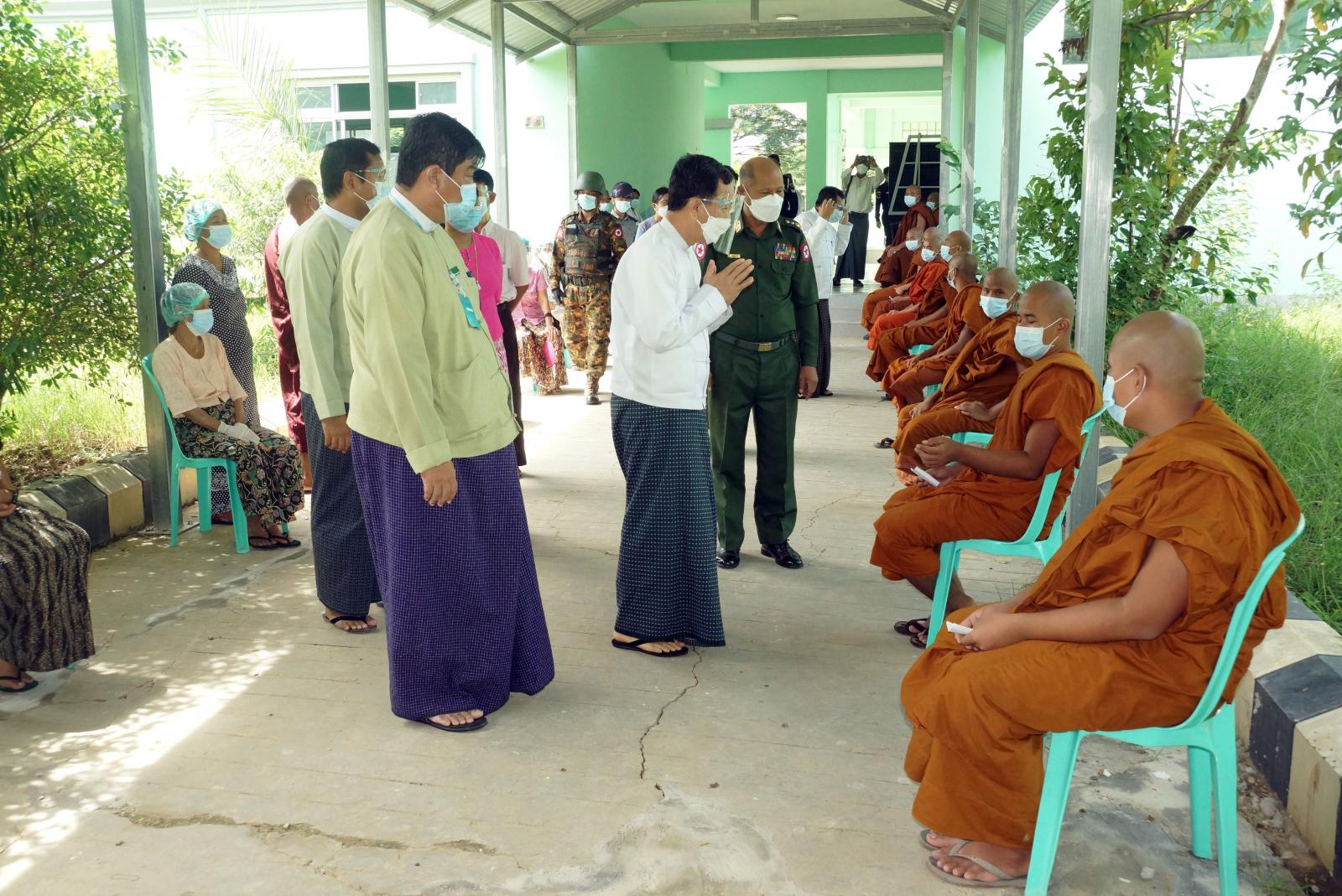 ထို့နောက် နေပြည်တော်ကောင်စီဥက္ကဋ္ဌ ဒေါက်တာမောင်မောင်နိုင် နှင့် နေပြည်တော်ကောင်စီ အဖွဲ့ဝင်များနှင့်တာဝန်ရှိသူများက ဇဗ္မူသီရိမြို့နယ်၊ အမှတ်(၇) အခြေခံပညာအထက်တန်းကျောင်း ဆေးထိုးစု ရပ်၌ အသက်(၆၅)နှစ်နှင့်အထက်သက်ကြီးဘိုးဘွားများ၊ ဝန်ထမ်းများအား ကိုဗစ်-၁၉ရောဂါကာကွယ်ဆေး ဒုတိယအကြိမ်ထိုးနှံပေးနေမှု အခြေအနေများကို သွားရောက်၍ကြည့်ရှု အားပေးပြီး ကိုဗစ်-၁၉ရောဂါ ကာကွယ်ဆေးလာရောက် ထိုးနှံကြသူများအား ရင်းရင်းနှီးနှီး နှုတ်ဆက်စကားပြောကြားခဲ့ကြောင်းသိရသည်။