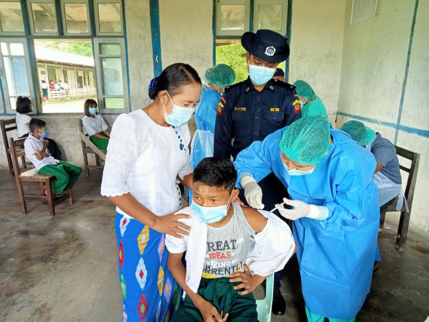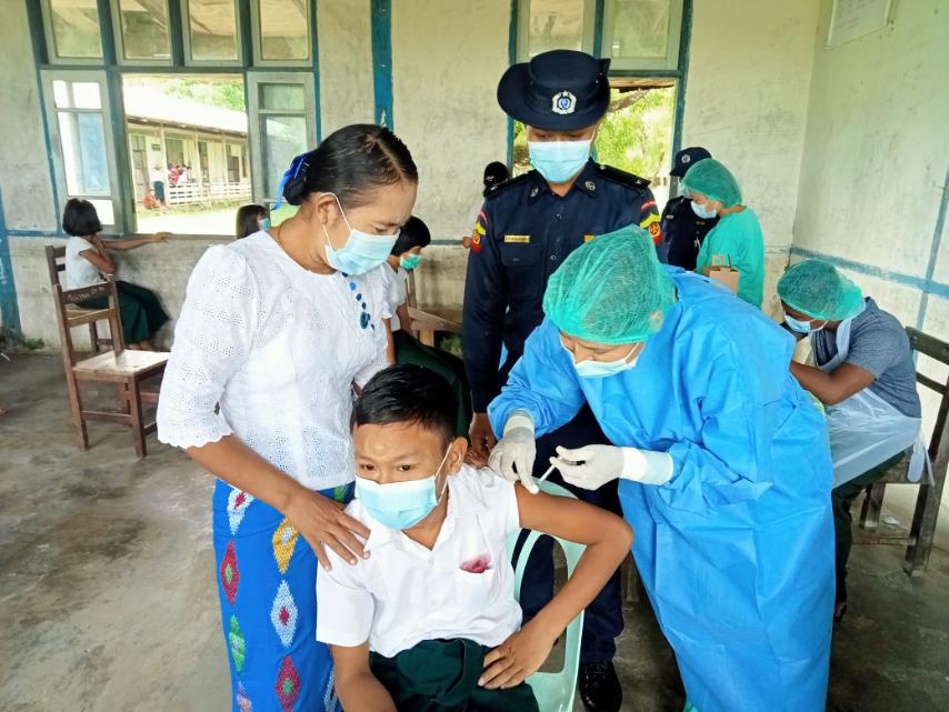 ရခိုင်ပြည်နယ် မာန်အောင်မြို့နယ်တွင် အသက်(၁၂)နှစ်အထက်အခြေခံပညာကျောင်းများမှ ကျောင်းသား/သူများအား ကိုဗစ် ၁၉ရောဂါကာကွယ်ဆေး(Sinovac)ထိုးနှံပေးခြင်းကို မာန်အောင်မြို့အထက အပါအဝင် ဆေးထိုးစုရပ်(၈)နေရာသတ်မှတ်ပြီး ယနေ့နံနက်၉နာရီမှညနေ၄နာရီထိ တစ်ပြိုင်တည်းထိုးနှံပေးလျက်ရှိကြောင်းသိရသည်။