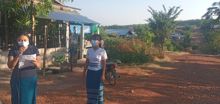 ထိုသို့ အသိပညာပေး နှိုးဆော်ရာတွင် ကိုဗစ်-၁၉ ရောဂါသည် ယခုအချိန်တွင် ဗီဇပြောင်း မျိုးကွဲသစ်အိုမီခရွန်အဖြစ် ရက်ပိုင်း အတွင်း နိုင်ငံအများအပြား၌ ကူးစက်ပျံ့နှံ့မှု ပိုမိုများပြားလာနေပြီဖြစ်သည့် အတွက် ကိုဗစ်-၁၉ရောဂါ မျိုးကွဲသစ်အိုမီခရွန် ကို ကြိုတင်ကာကွယ်နိုင်ရန် ပြည်သူများအနေဖြင့် နေအိမ်ပြင်ပထွက်ခွာပါက နှာခေါင်းစည်း (Mask) စနစ်တကျ တပ်ဆင်ကြရန်၊ လူအများနှင့် ထိတွေ့ဆက်ဆံပါက မျက်နှာကာ (Face shield) ကို တွဲဖက် တပ်ဆင်ရန်၊ လူစုလူဝေး ရှောင်ရှားရန်၊ လက်ကိုစက္ကန့် ၂၀ ကြာ မကြာခဏ စနစ်တကျ ဆေးကြောရန်၊ အလုံပိတ် အခန်းများ၊ အဲယားကွန်းအခန်းများ၊ လေဝင်လေထွက် မကောင်းသော အခန်းများသို့ သွားရောက်ခြင်းမှ အတတ်နိုင် ဆုံး ရှောင်ရှားရန်၊ ကိုဗစ်-၁၉ရောဂါ သံသယလက္ခဏာများ ပေါ်ပေါက်ပါက နီးစပ်ရာ ကျန်းမာရေးဌာနသို့ ချက်ချင်း ဆက်သွယ်၍ စောစီးစွာ ကုသမှုခံယူကြရန်နှင့် ကိုဗစ်-၁၉ ရောဂါကို ထိထိရောက်ရောက် ကာကွယ်နိုင်ရန်အတွက် ကိုဗစ်-၁၉ ရောဂါ ကာကွယ်ဆေးကို မဖြစ်မနေထိုးနှံကြရန် စသည့်အချက်များကို အသံချဲ့စက်ဖြင့် လိုက်လံ နှိုးဆော်ခဲ့ကြကြောင်း သိရသည်။
