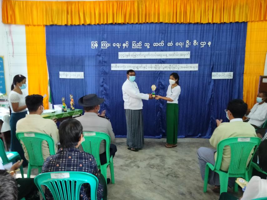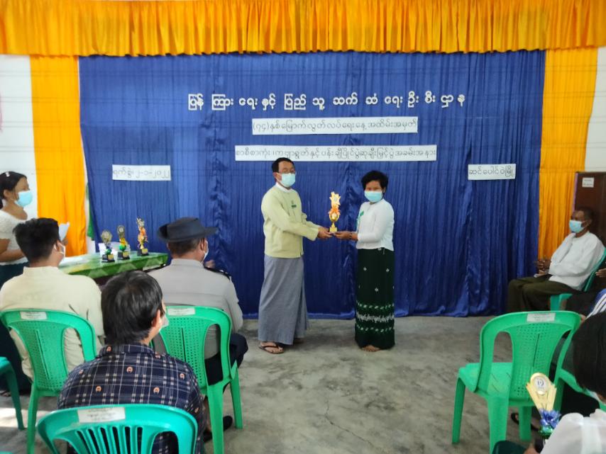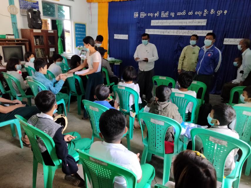 ထို့နောက်ပြိုင်ပွဲတွင် ပထမဆု၊ ဒုတိယဆု၊ တတိယဆုနှင့် နှစ်သိမ့်ဆုများရရှိသော ကျောင်းသား၊ ကျောင်းသူများနှင့် ယမန်နေ့က မူလတန်းအဆင့် ပန်းချီပြိုင်ပွဲတွင် ဆုရရှိသူများပါ တာဝန်ရှိသူ များက ဆုများအသီသီး ပေးအပ်ချီး မြှင့်ခဲ့ပြီး ဝင်ရောက်ယှဉ်ပြိုင်သော ကျောင်းသား၊ ကျောင်းသူ တစ်ဦးချင်းစီကို စာအုပ်များအမှတ်တရ လက်ဆောင်အဖြစ် ပေးခဲ့ကြောင်း သိရသည်။