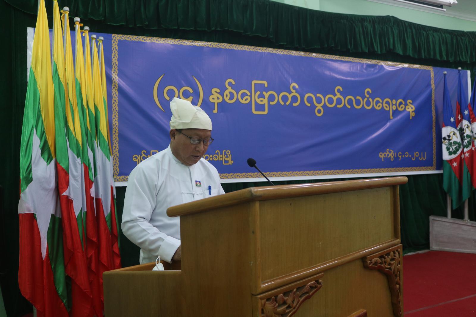 အခမ်းအနားတွင် မြန်မာနိုင်ငံရဲတပ်ဖွဲ့ ဂုဏ်ပြုတပ်ဖွဲ့က နိုင်ငံတော်အလံအား တိုင်ထိပ်သို့ လွှင့်တင်ပြီး ပြည်နယ်ဝန်ကြီးချုပ် ဦးငွန်ဆန်းအောင်၊ ပြည်နယ်တရားသူကြီးချုပ်၊ ပြည်နယ်အစိုးရ အဖွဲ့ဝင် ဝန်ကြီးများ၊ ပြည်နယ်ဉပဒေချုပ်၊ အနောက်မြောက်တိုင်းစစ်ဌာနချုပ် ဒုတိယတိုင်းမှူး ဗိုလ်မှူးချုပ်မျိုးထွဋ်လှိုင်၊ ပြည်နယ်အစိုးရအဖွဲ့အတွင်းရေးမှူး၊ ဟားခါးတပ်နယ်မှ ဗိုလ်မှူးကြီး စောထွန်းနှင့် ပြည်နယ်၊ ခရိုင်၊ မြို့နယ် အဆင့် ဌာနဆိုင်ရာအကြီးအကဲများက နိုင်ငံတော်အလံအား အလေးပြုကြသည်။