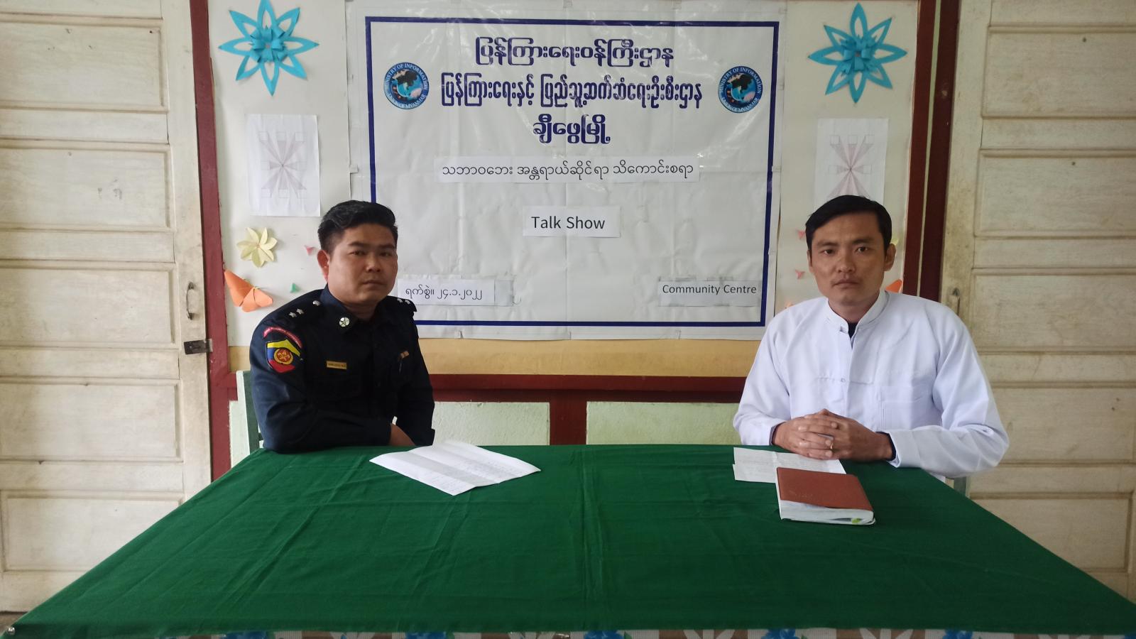 ယင်းနောက် မြို့နယ်မီးသတ်ဦးစီးဌာနမှ မြို့နယ်ဦးစီးမှူး ဦးအောင်ဖြိုးဝေက မီးသတ်ဦးစီးဌာန၏ လုပ်ငန်းတာဝန်များ၊ ရည်မှန်းချက်များနှင့် သဘယဝဘေးအန္တရာယ်ဖြစ်သည့် မီးဘေးအန္တရာယ်ဆိုင်ရာ ကြိုတင်ကာကွယ်ရေးအတွက် ဆောင်ရွက် ရမည့် အချက်များ၊ ရေဘေး၊ ငလျင်ဘေး၊ မြေပြိုဘေးအန္တရယ်များ ဖြစ်ပေါ်လာပါက ရှောင်ရန်၊ ဆောင်ရန်အချက်များကို ဆွေးနွေး ပြောကြားခဲ့ကြောင်း သိရှိရသည်။