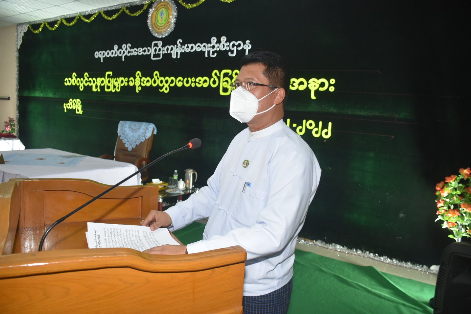 ရှေးဦးစွာ တိုင်းဒေသကြီးဝန်ကြီးချုပ်မှ အဖွင့်မိန့်ခွန်းပြောကြားရာ သစ်လွင်သူနာပြုများသည် တိုင်းဒေသကြီးအတွက် အားထားရတဲ့ သူနာပြု ဆရာ၊ ဆရာမများဖြစ်ပြီး နိုင်ငံအတွက် အားကိုး အားထားရတဲ့ ကျန်းမာရေးဝန်ထမ်းတွေကို မွေးထုတ်ပေးနိုင်တဲ့အတွက် ဝမ်းမြောက်မိပါကြောင်း၊ ကျန်းမာရေး စောင့်ရှောက်မှုပေးနေသည့် ကျန်းမာရေးဝန်ထမ်းများအားလုံးကိုလည်း ကျေးဇူး အထူး တင်ရှိပါကြောင်း၊ သူနာပြု-သားဖွားများဟာ ပင်ကိုယ်သဘာဝ စိတ်ရောကိုယ်ပါ ဖြူစင်သူများ၊ နူးညံ့သိမ်မွေ့သူများ၊ ယဉ်ကျေးပျူငှာသူများ ဖြစ်ကြတဲ့အတွက် မလိုလားအပ်သူ တို့ရဲ့အရောင်ဆိုးမှု ကို ခံရတတ်၍ ဂါရဝတရား၊ နိဝါတတရားများ မပျက်ပြားလေအောင် ဆရာ သမားများ၊ အကြီး အကဲများ၊ သူနာပြုနှင့် သားဖွား တာဝန်ရှိသူများက သတိရှိရှိဖြင့် ထိန်းသိမ်းကြပ်မတ်ပေးခြင်းကို နာခံရန်လိုအပ်ပါကြောင်း၊ သူနာပြု-သားဖွားများကလည်း ပြည်သူ့နီတိ ကျင့်စဉ်များကို မမေ့မလျော့ အသိရှိရှိဖြင့် ကျင့်သုံးလိုက်နာနေထိုင်ကြပြီး တာဝန်ကျရာဒေသများတွင်လည်း မိမိတို့၏ တာဝန် ဝတ္တရားများကို ကျေပွန်အောင် ဆောင်ရွက်ကြဖို့လိုကြောင်း ပြောကြားခဲ့သည်။