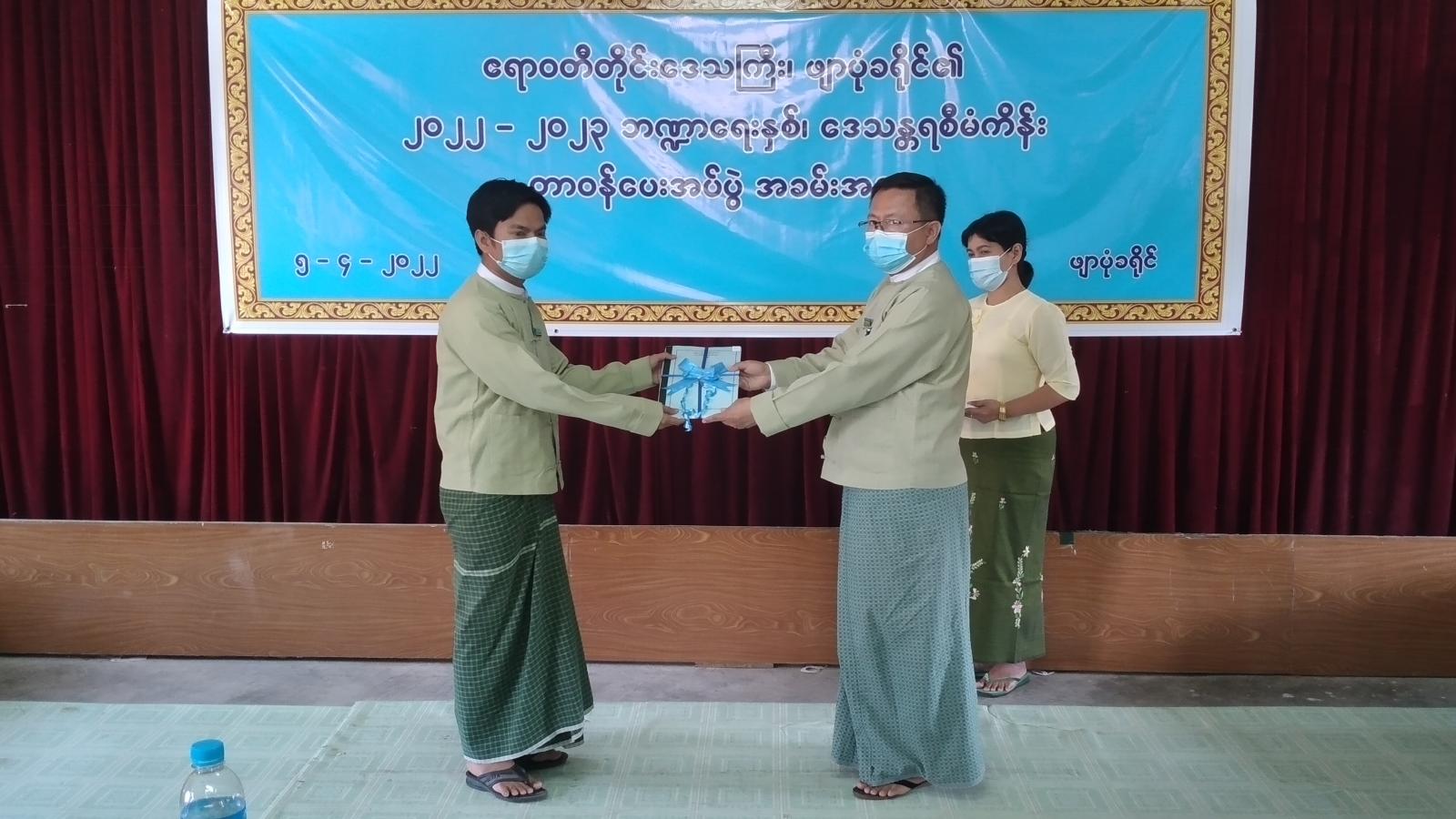ဧရာဝတီတိုင်းဒေသကြီး၊ ဖျာပုံခရိုင်၏ ၂၀၂၂-၂၀၂၃ ဘဏ္ဍာရေးနှစ်၊ ဒေသန္တရစီမံကိန်း တာဝန်ပေးအပ်ပွဲ အခမ်းအနားကို ဧပြီလ ၅ ရက်နေ့ နေ့လည် (၂) နာရီခွဲက ဖျာပုံခရိုင် အထွေထွေအုပ်ချုပ်ရေးဦးစီးဌာန အစည်းအဝေးခန်းမ၌ကျင်းပသည်။