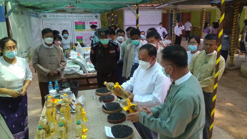 ဆက်လက်၍ တိုင်းဒေသကြီး ဝန်ကြီးချုပ် ဦးမြတ်ကျော်နှင့် တာဝန်ရှိသူများက နေကြာ စိုက်ပျိုးထုတ်လုပ်မှု ပြခန်းများနှင့် သရုပ်ပြသနေမှုများအား လိုက်လံကြည့်ရှု အားပေးပြီး လိုအပ်သည်များကို တာဝန်ရှိသူများနှင့် ဖြည့်ဆည်းပေါင်းစပ် ဆောင်ရွက်ပေးခဲ့သည်။