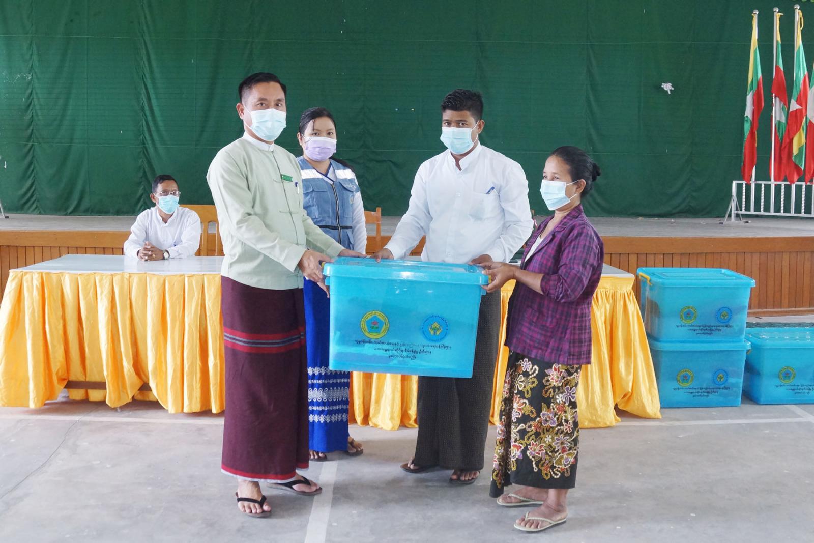 ထိုထောက်ပံ့ငွေနှင့် ပစ္စည်းများထောက်ပံ့ပေးအပ်ရာတွင် မြို့နယ်စီမံအုပ်ချုပ်ရေးအဖွဲ့ ဥက္ကဋ္ဌ ဦးစိန်ကြည်၊ မြို့နယ်စီမံအုပ်ချုပ်ရေးအဖွဲ့ အဖွဲ့ဝင်(၁) ဗိုလ်မှူးသန်းနိုင်ကျော်၊ အဖွဲ့ဝင်(၂)ဦးသန်းငွေနှင့် ခရိုင်ဘေးအန္တရာယ်ဆိုင်ရာစီမံခန့်ခွဲမှုဦးစီးဌာနမှ တာဝန်ရှိသူတို့က လေဘေးသင့်အိမ်ထောင်စု ပြည်သူများကို အားပေးစကားပြောကြားခဲ့ပြီး လေဘေးသင့်အိမ်ထောင်စု(၂၂)စုအတွက် စုစုပေါင်း ထောက်ပံ့ငွေ (၁၄၀၁၄၀၀) ကျပ်နှင့် ကယ်ဆယ်ရေးပစ္စည်း(၁၇)မျိုးပါ ပလပ်စတစ်ပုံးများကို လက်ဝယ်အရောက်ထောက်ပံ့ပေးအပ်ခဲ့ကြောင်း သိရသည်။