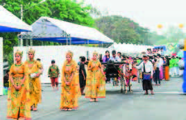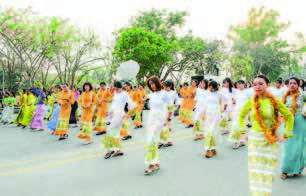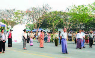 First, the Union Minister viewed the arch for opening the Thingyan festival and rehearsals of the dance groups dancing and singing the song “Thingyan Moe”.